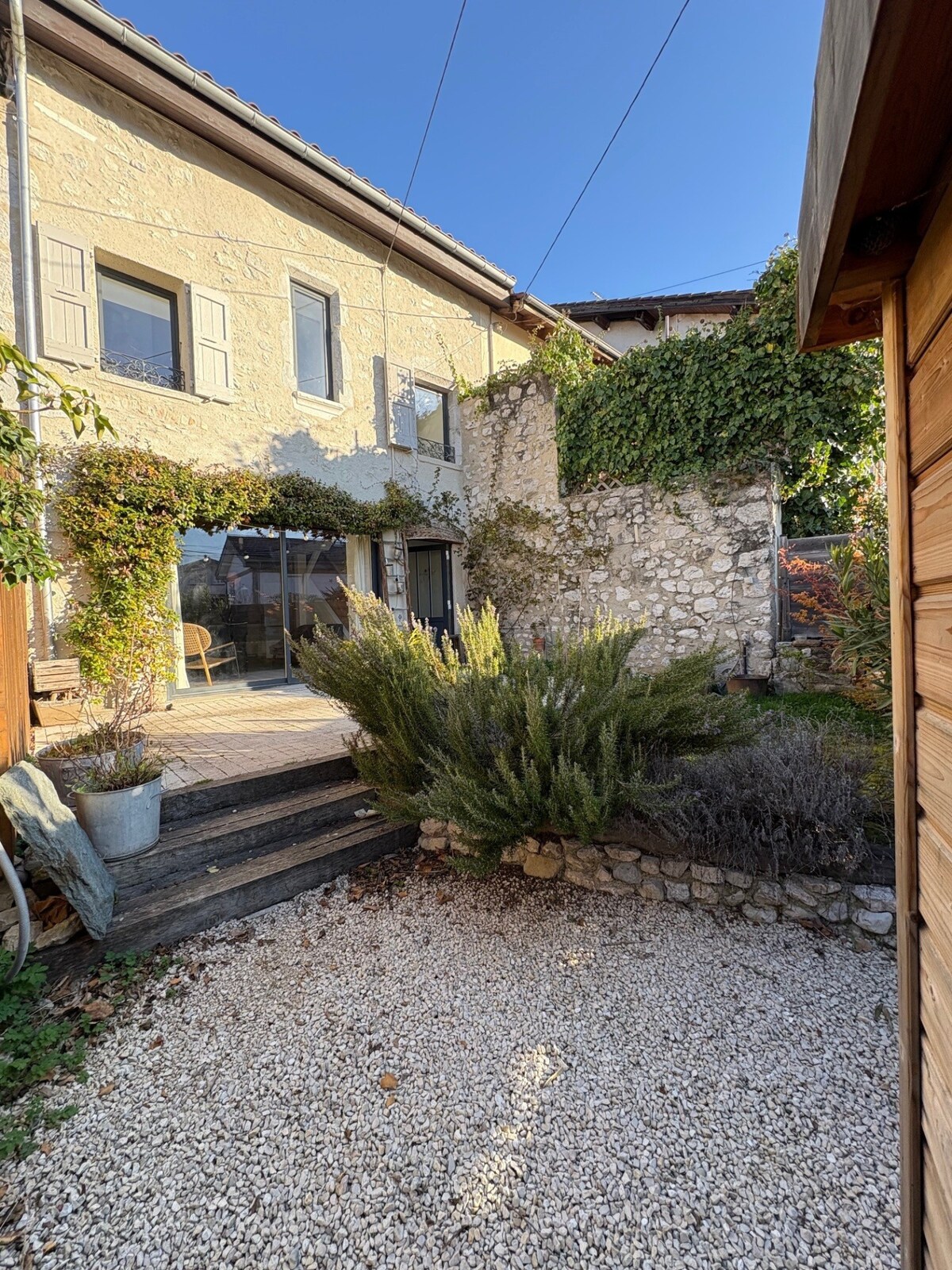 Le Chalet des Eymes welcomes you with unobstructed views of the mountains. Independent extension of the house with separate entrance, 35 m² + mezzanine bedroom. Private kitchen, bathroom, toilet and terrace. King-size bed upstairs, sofa bed and pull-out bed as well. Free access to the pool facing the mountains, and to the spa by reservation. TV. Netflix. Internet. Elliptical and rowing machine. Bakery and shops within 200 meters. Ideal romantic getaway or with a child.