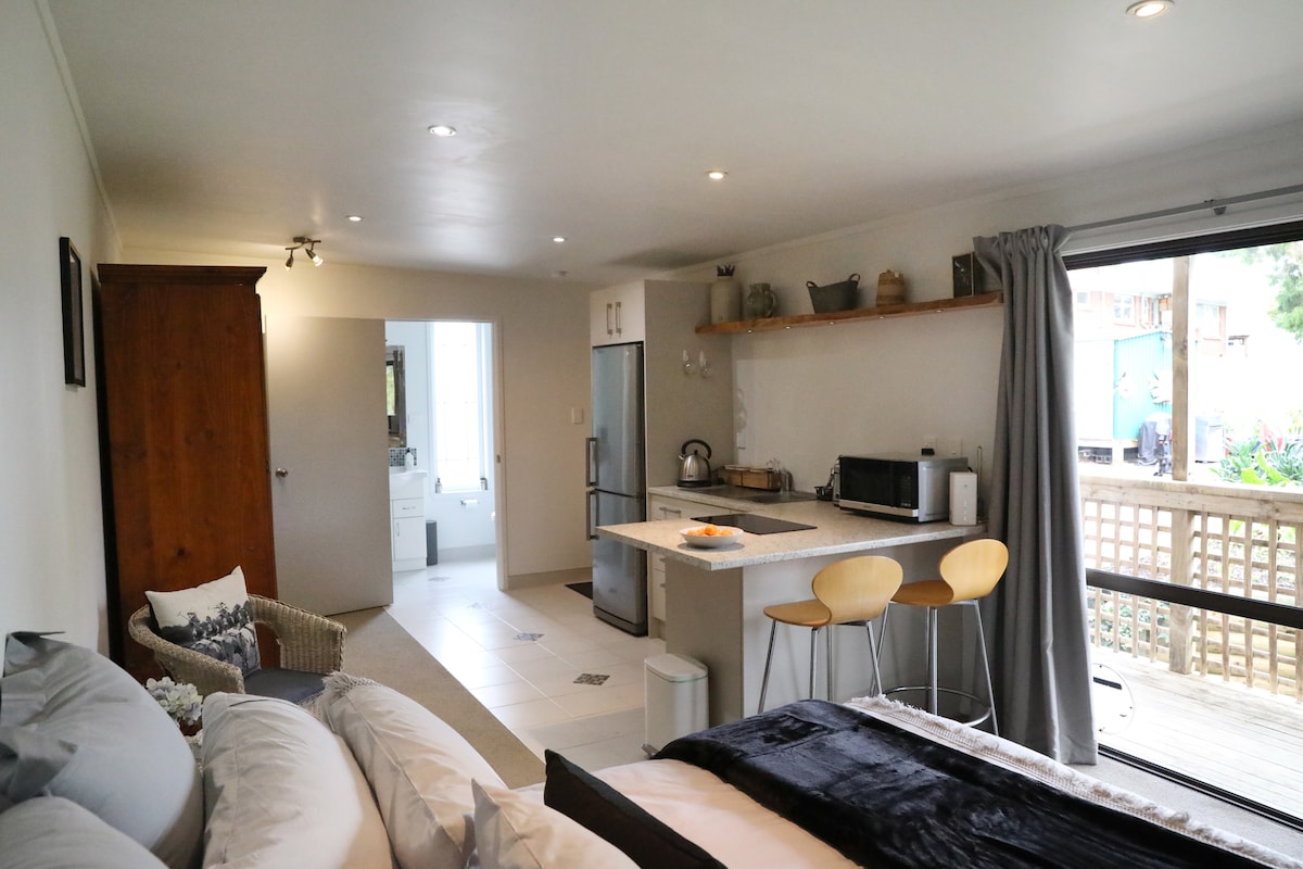 Welcome to The Studio, our studio accommodation in the foothills of the Waitakere Ranges. Perfect for couples, friends or solo travellers coming to Auckland for business, holidays, weddings, concerts, sports games and events. Just minutes from the historic Swanson Railway Station, we are perfectly located to enjoy all that the west and north of Auckland has to offer, including stunning west coast beaches, wineries, forest and bush (we recommend guests bring a car).