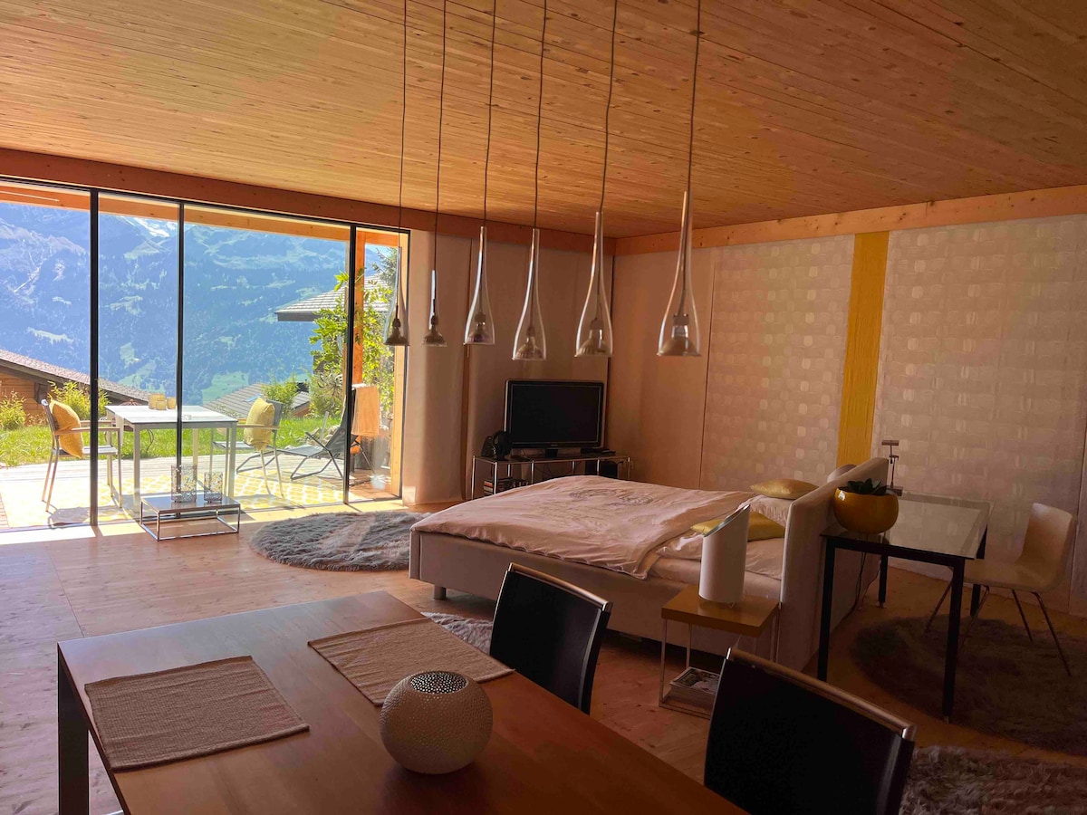 Modern accommodation with panoramic views of Lake Thun
