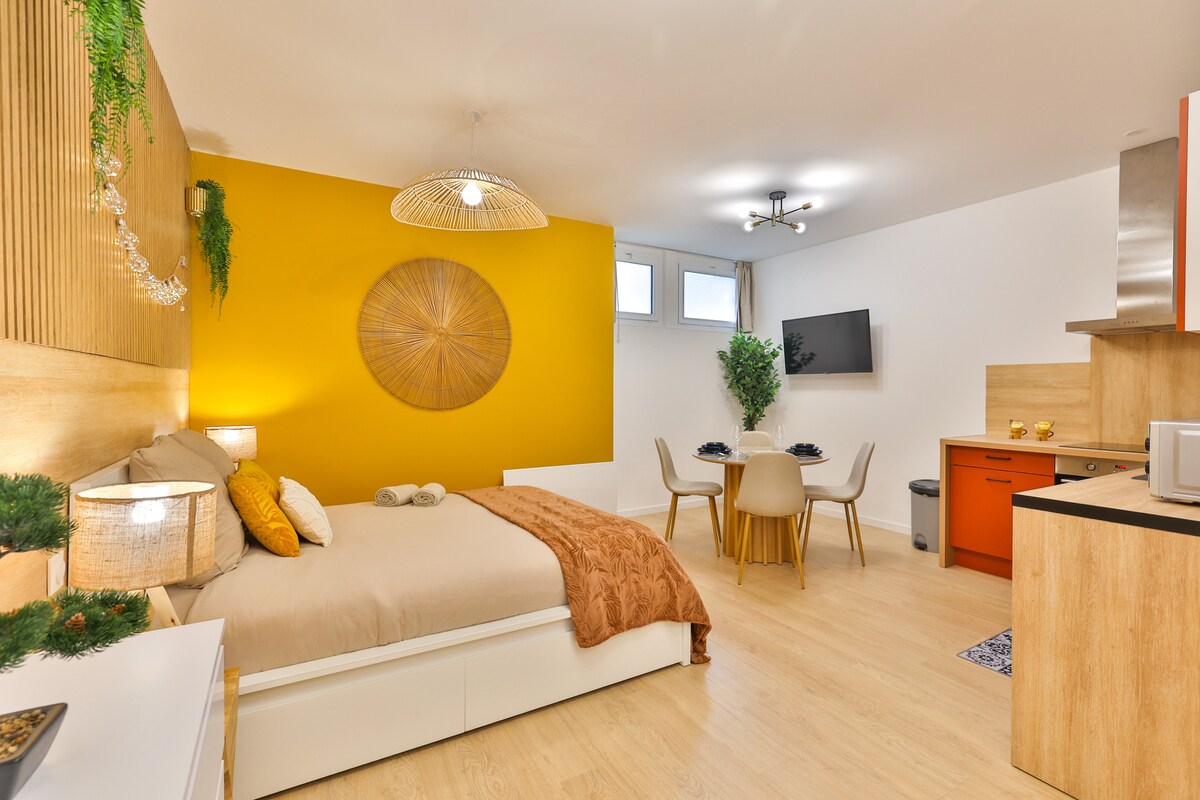 Quiet, in the countryside, 10 minutes from Saintes city center, we welcome you to a gated property with private parking, in a very functional studio. An adjoining terrace allows you to have lunch in the sun while enjoying a view of the wooded park with Ouessant sheep and chickens.
