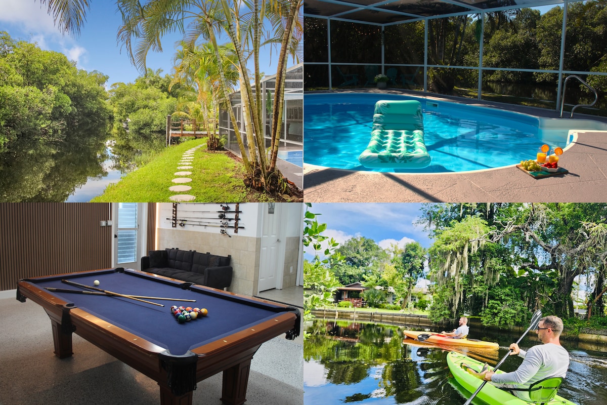 Your waterfront escape in North Fort Myers! Newly renovated 3-bedroom home on the canal with Caloosahatchee River & Gulf access. Wake up to sunrises on your screened lanai, kayak the canal, or BBQ in the outdoor kitchen. Gourmet indoor kitchen, dedicated workspace, WiFi & smart entry make it easy. 6 min to downtown Ft Myers, close to beaches & attractions. Pet-friendly, single-level home with 5.0-star. Perfect for families, boaters, remote workers & snowbirds seeking serenity near the action!