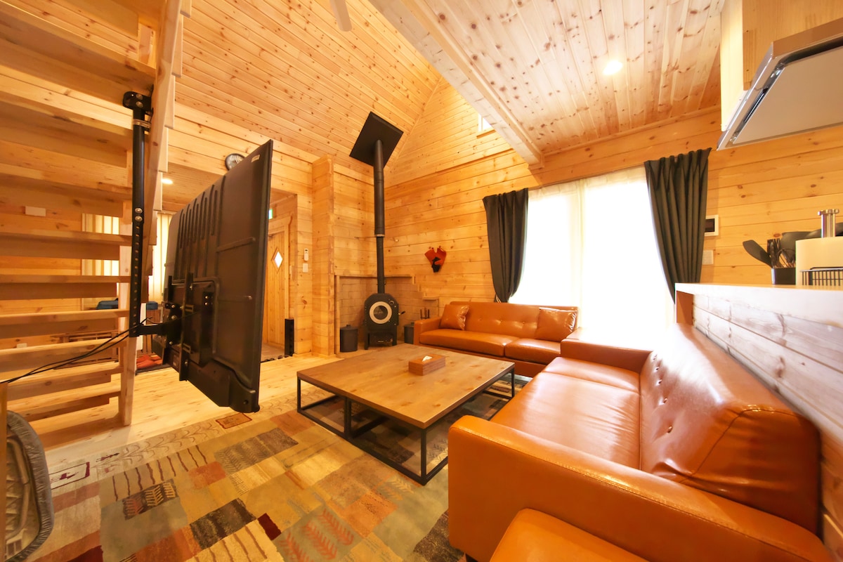 This accommodation is a private resort called "Private Resort Fuji", located in a villa area 11 minutes on foot from Lake Yamanaka, which was renovated by a designer in July 2024. A modern Japanese design house with a floor area of 115㎡, based on a 3LDK log house, When you go up to the second floor, you can see the large Mt. Fuji from the living room window, have a BBQ on the large balcony with Mt. Fuji in the background, and after enjoying the barrel sauna surrounded by trees, you can take a forest bath in the outdoor rest space. There is a large fire pit in the garden, and you can talk around the fire. Also, there is a high fence in the garden, so you don't have to worry about your dog running away if you bring it with you. The room has a large 90-inch screen where you can enjoy Prime Video, Youtube, etc. At night, you can see a sky full of stars if the conditions are right.