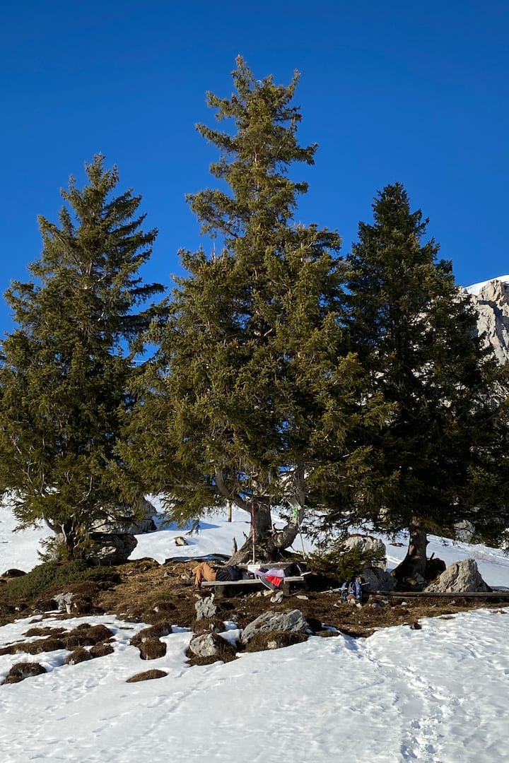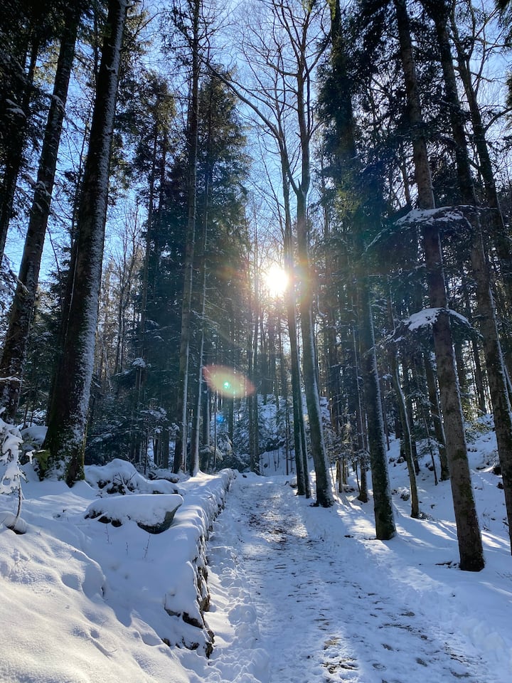 Scenic winter hike in William Tell's mountain