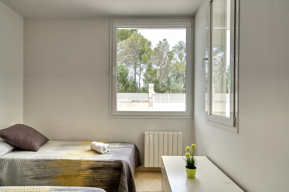 Charming and intimate house 10 minutes from Palma with 7000m2 of garden, swimming pool, outdoor heated Jacuzzi and beautiful garden. It has 3 bedrooms and 2 bathrooms. It has a large terrace overlooking the garden, porches, fireplaces, barbecue, air conditioning and heating… Very spacious and comfortable. Quiet area 7 km from downtown Palma, airport, and beaches. Supermarkets 1km away. Ideal for relaxing, island tours, cycling etc... We love pets, so bring them ;-)