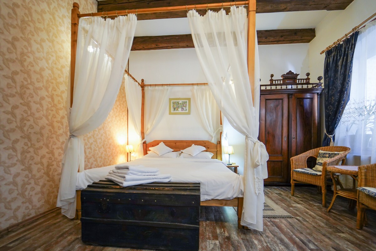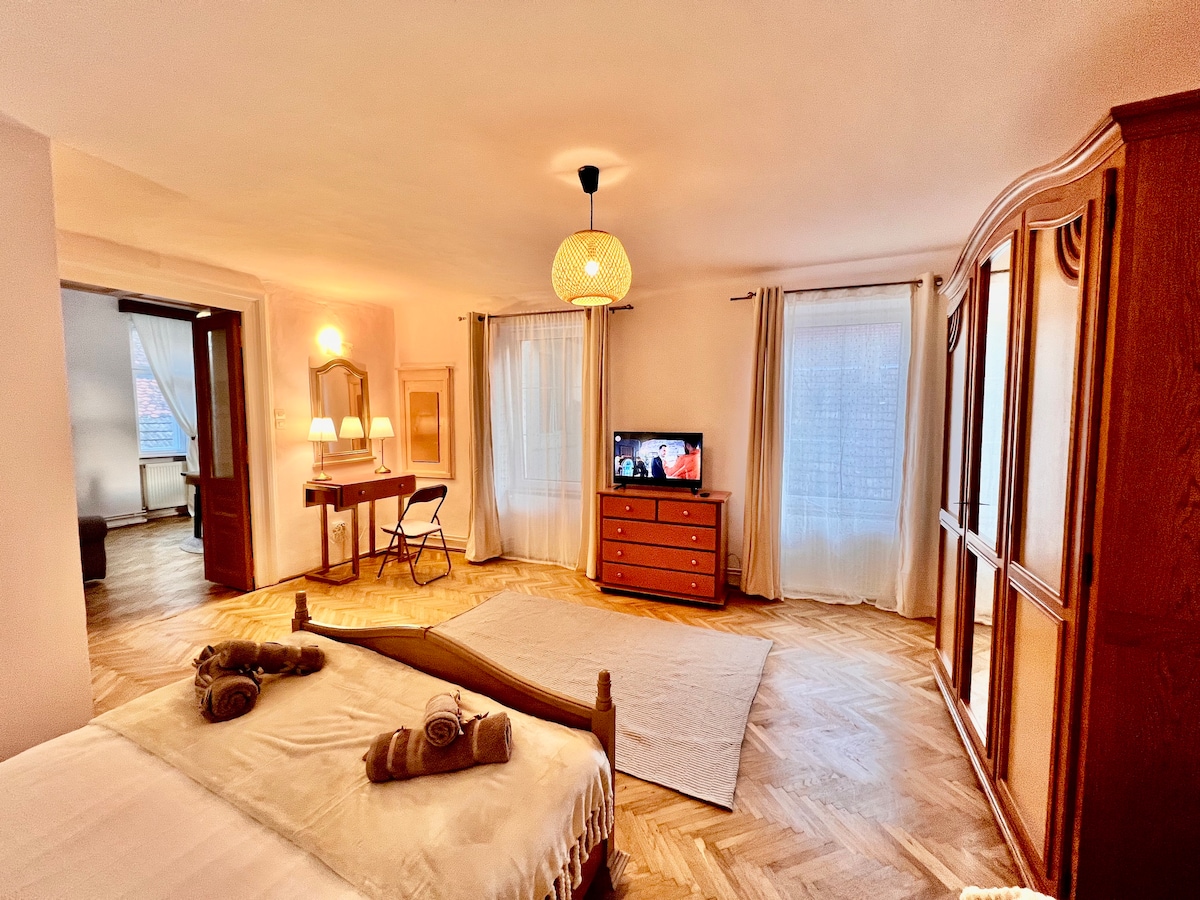 Spacious studio in the heart of historic Brașov. This spacious studio apartment is located in a charming historic house right in the center of Brașov. It features a large living area with a comfortable queen bed, a modern bathroom, and a fully equipped kitchen. Just a few minutes’ walk from most of the main tourist attractions, with easy access to the best restaurants, shops, and nightlife the city has to offer.