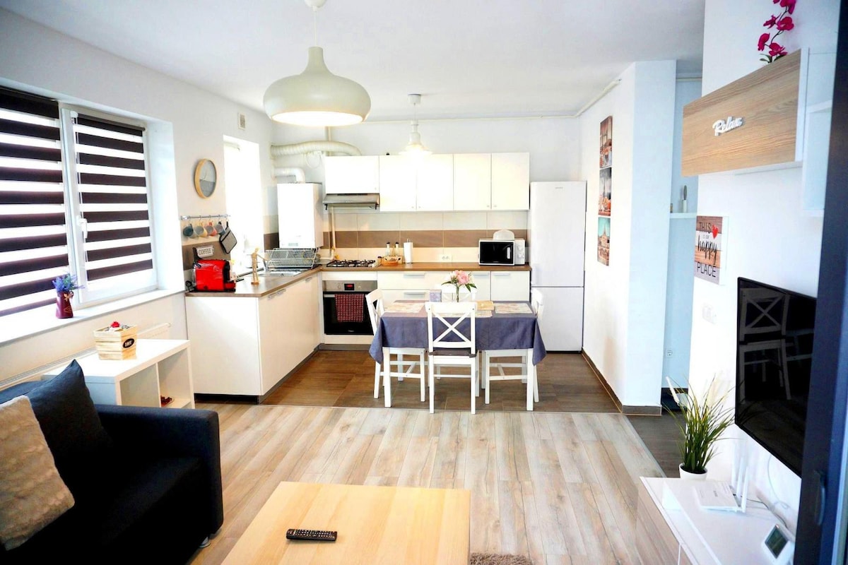 Enjoy your stay in Brasov in this comfortable apartment. The apartment is perfect for couples or families offering a relaxing atmosphere and all the necessary amenities to feel at home. Take advantage of an attentive host and a wonderful place to relax after a day full of adventures in Brașov!