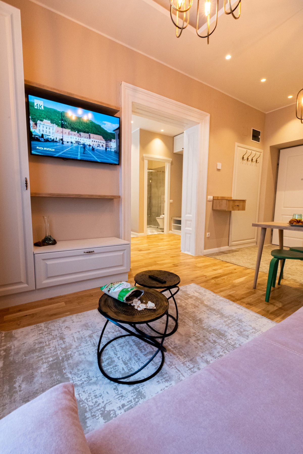 The Apartment is set in the center of Brasov, in the historic Council Square, and offers stylish accommodation with views of the Black Church and the Tampa Mountain. It has a large living room, two bedrooms, dining room with a fully equipped open kitchen, a large full bathroom, and supplementary WC.