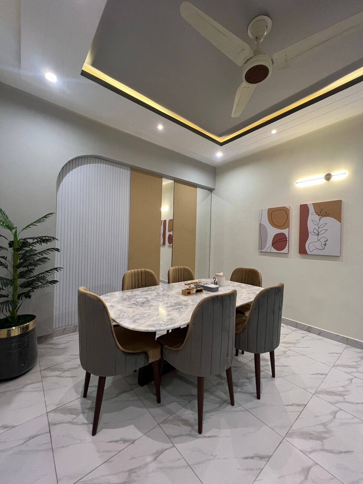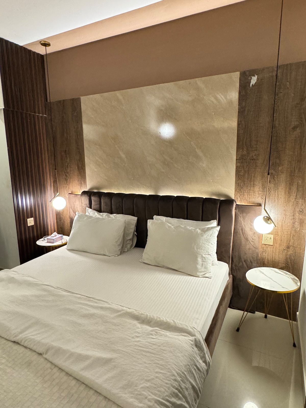 This stylish place to stay is perfect for group trips. Centrally located in defence phase 6 . This apartment is newly furnished with the team of architects and interior designer which gives the best comfort at this place . The bedroom room size is spacious and enormous. This is 1980 sqft , 2 king size bedroom along with 02 tV lounge area , 02 dinning area. In this space maximum 8 persons can accommodate.
