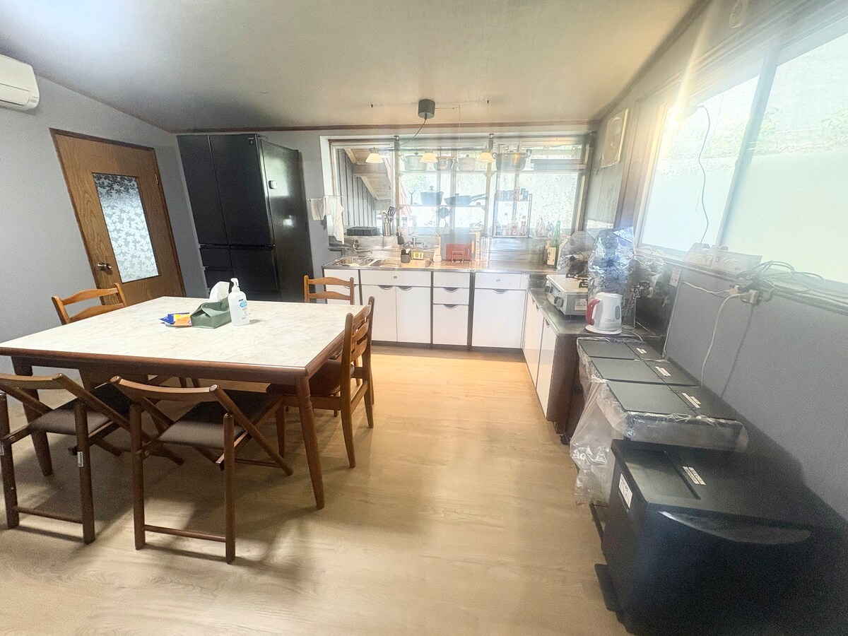 It is conveniently located almost in the center of Sado, a 3-minute walk from the supermarket and a 5-minute walk from the nearest bus stop (Niigata Kotsu Sado Izumi). You can have a BBQ with your pet in the private garden of this DIY rental where you can ensure privacy. All bedrooms have beds for 2 people in 2 rooms and 1 person in 1 room. In winter, you can enjoy the wood stove. Enjoy Sado with our inn as your base.