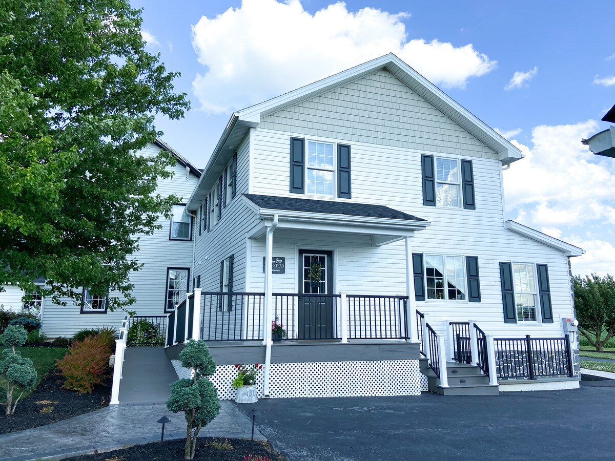 We're located in the heart of scenic Lancaster County, PA, minutes from countless restaurants, attractions, and shopping, including Sight & Sound Theatre, Dutch Wonderland, and Outlet Malls. Whether your coming to country for a vacation weekend of exploration, or a quiet getaway to work and rejuvenate, our guesthouse is the perfect fit for you! There's several different tables and islands to accommodate work and dining in, as well as space outside for children to use riding toys and play.