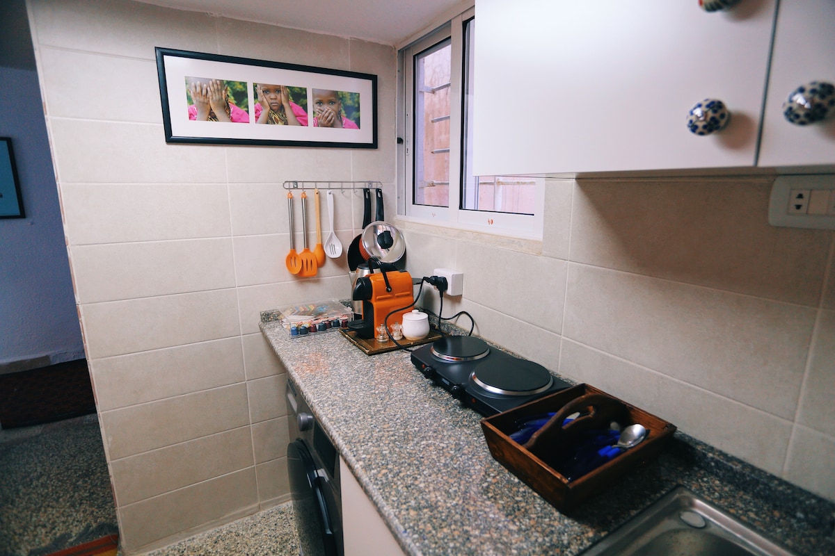 Originally built in 1952, This building has served as our grandparent's book of beautiful memories for many years. We, the grandchildren, have now transformed and expanded these apartments to carry, and add to, the family legacy. The Apartment has a great location and is fully serviced. 50 m2 made up of a bedroom with a king size bed, full bathroom, kitchen, living area and a balcony with great views of the city. Welcome to your nu home!
