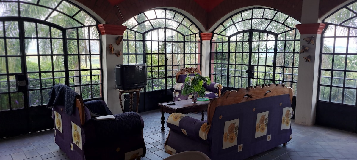 Relax with the whole family or friends in this home where the tranquility is breathable. Country house has 2 rooms and a lid with views of the canyon Each room has a king size bed, two single beds and a double bed. Bathrooms : 1/2 bath 1 full bathroom It features a space to set tables in the garden It is a nice cabin with large spaces in private coto. Fireplace inside the house overlooking the garden for you to enjoy 7 minutes from Sahuayo