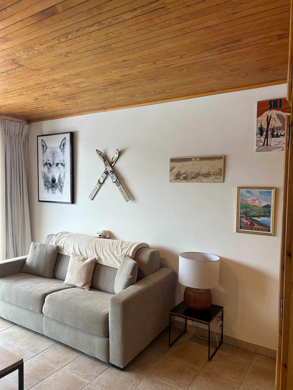 The comfortable 40 m2 Bouquetin is located on the ground floor of the building. It can accommodate up to 4 people and has one bedroom with a double bed. It has a bathroom with shower and separate toilet. The comfortable living room has a balcony that offers stunning mountain views. It has a sofa that converts into a double bed and can sleep 2 people. The kitchen is fully equipped and is connected to the living room. 5-minute walk to the slopes, shops and restaurants.