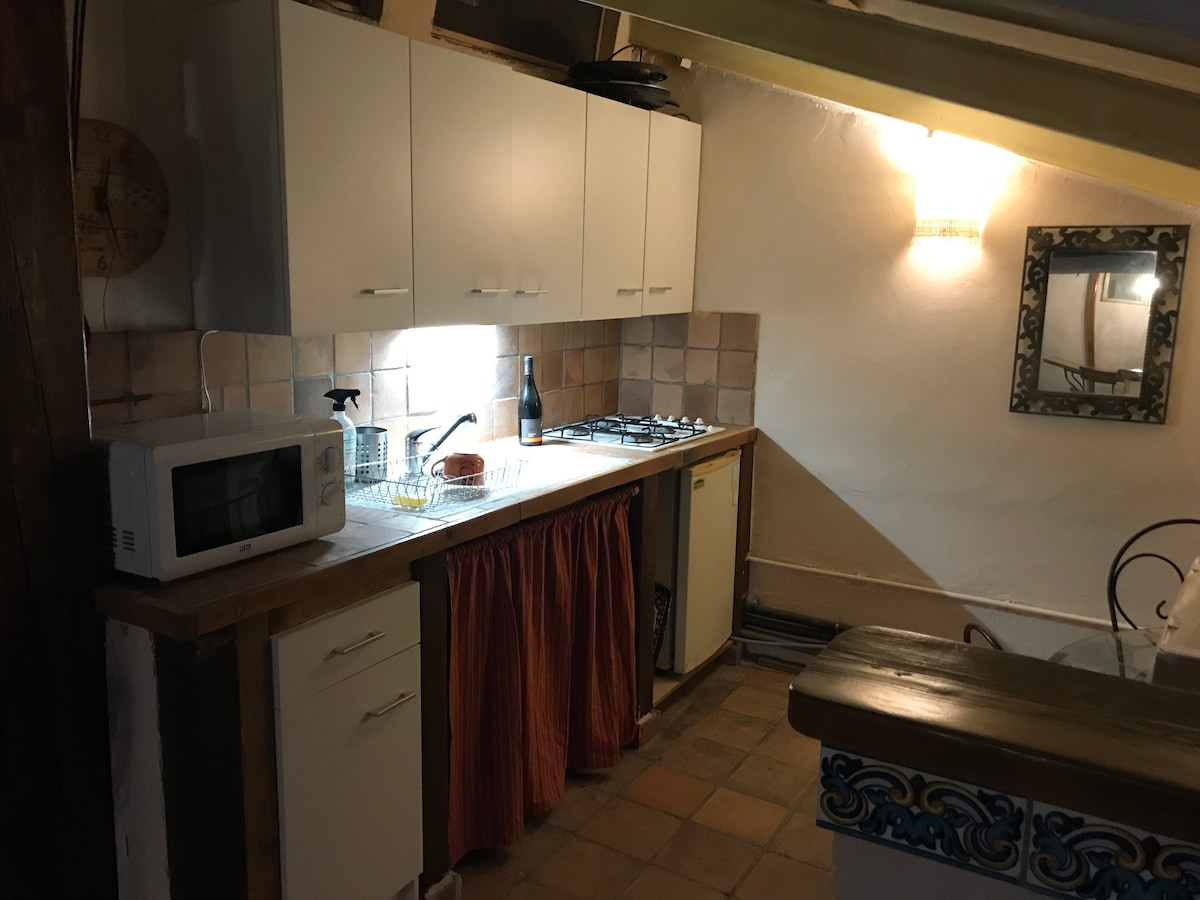 Studio indépendant climatisé, refait à neuf, avec mur en pierres et poutres apparentes, dans une ancienne grange rénovée en plein cœur du village de Baho, donnant sur un charmant jardin au calme et sans vis à vis. Entrée commune par la maison principale, (passage par le salon), ce studio de 40 m2 avec terrasse privative surplombe le jardin pour apéro ou détente. Lit double 160x200 cm, avec coin salon canapé tv, coin repas avec table bistrot, Kitchenette équipée et sdb privative avec wc.