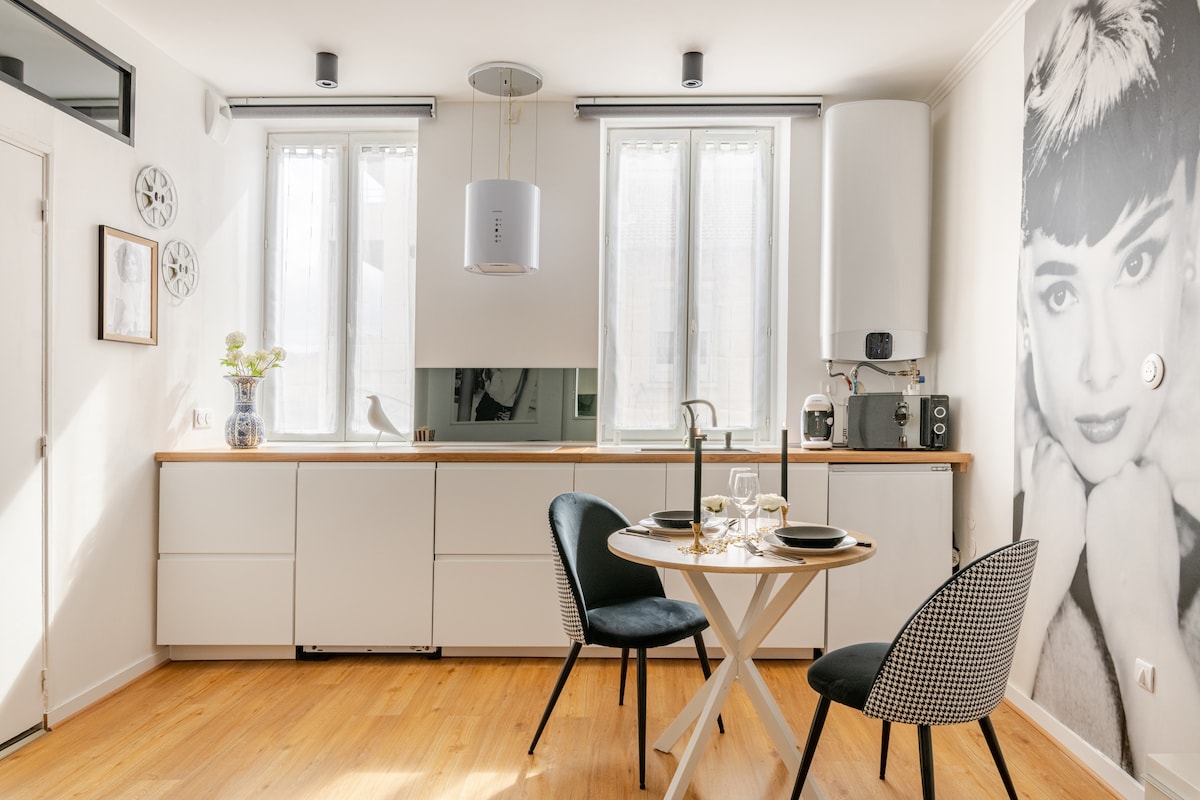 🎥 Logement insolite "Cin'& Chic" - pour une soirée film à deux. Plongez dans l’univers du 7e art avec ce studio élégant et romantique, situé à proximité de place Carnot (quartier BERGSON), au cœur de Saint-Étienne. Idéal pour un séjour romantique, professionnel ou touristique, ce logement allie décoration soignée, équipements modernes et localisation stratégique. 🌐 Restez connectés grâce au WIFI et à Alexa. 🎥 Profitez d'une soirée cinéma privé avec vidéoprojecteur et Netflix.