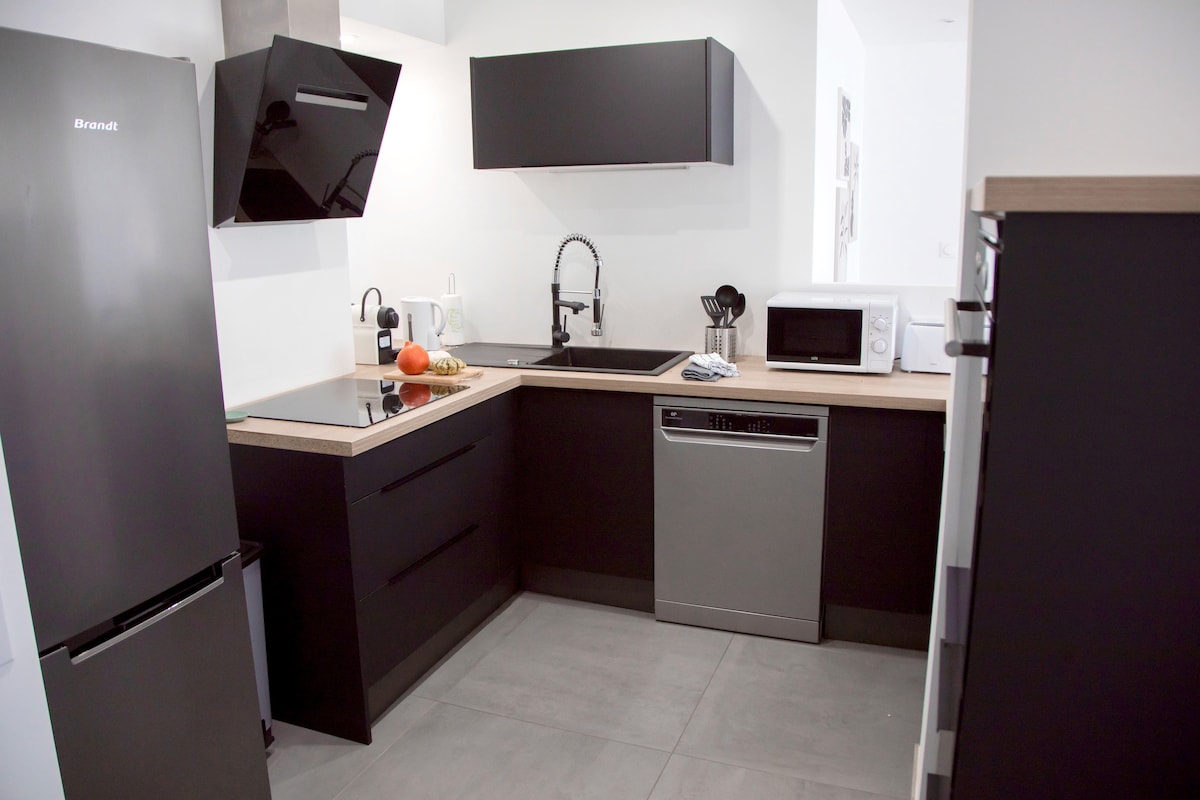 ★ WELCOME to "The Speakeasy"! ★ Immerse yourself in the Prohibition of the 1930s and its New York pub atmosphere of the time. A business trip? Tourism? Alone or as a couple? Located in the heart of downtown Saint-Étienne (300 m), come and discover this luxurious accommodation at the end of a quiet courtyard, accommodating up to 2 people. Everything is within walking distance, tram/bus, Stade Geoffroy Guichard & next to Chateaucreux train station!