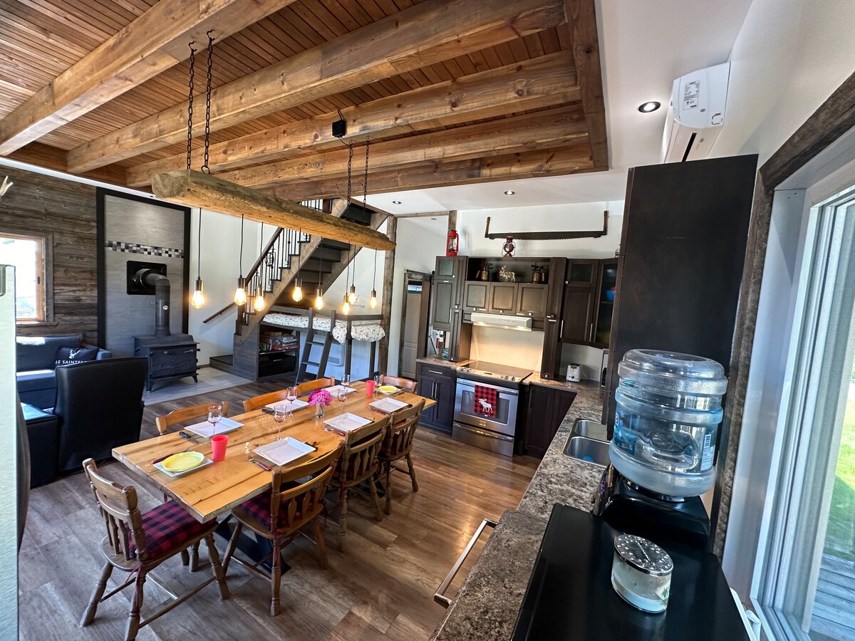 Comfortable, spacious and fully equipped, this chalet can accommodate up to 11 people. Located in the heart of the forest on a vast private site. Outdoor enthusiasts, hikers, mountain bikers and snowmobilers Spa and relaxation area sheltered from mosquitoes✅👌 Well located for local activities, come and recharge your batteries in the heart of the Appalaches. And if you prefer to stay on site and enjoy the facilities: hot tub, zip line, outdoor games, sandbox, board games and much more! Everything is there!🌈