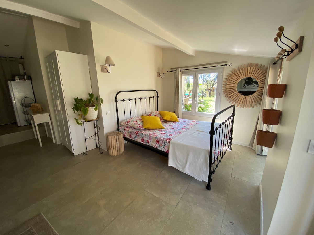 Bienvenue au gîte Le Patio 🌿 Indépendant et régulièrement redécoré, ce gîte de 45 m² allie confort, modernité et climatisation pour un séjour en toute sérénité. Vous profiterez d’un grand jardin privatif exposé plein sud, au cœur d’une propriété arborée de chênes centenaires. Soleil, senteurs méditerranéennes et chant des cigales rythmeront vos moments de détente. Un cadre idéal pour se ressourcer et savourer la douceur de vivre du Sud. 🌞