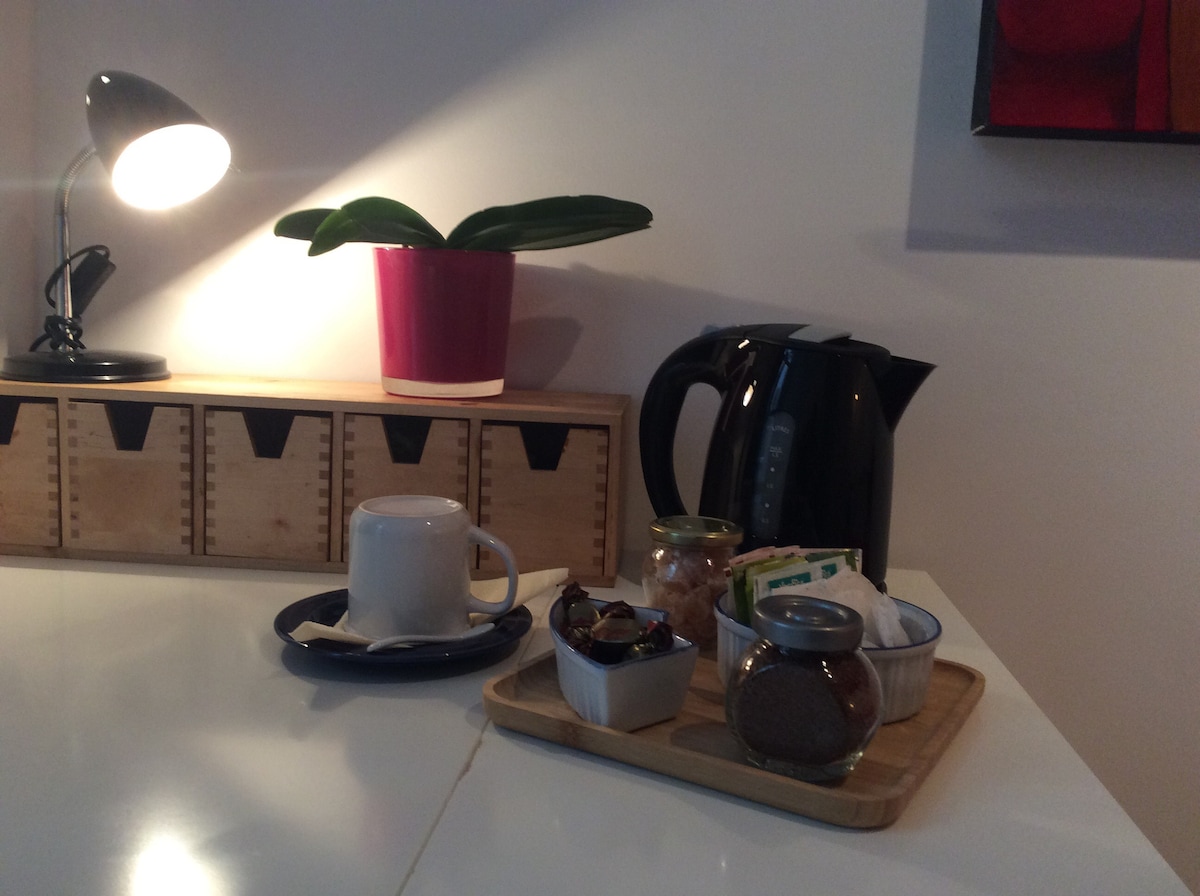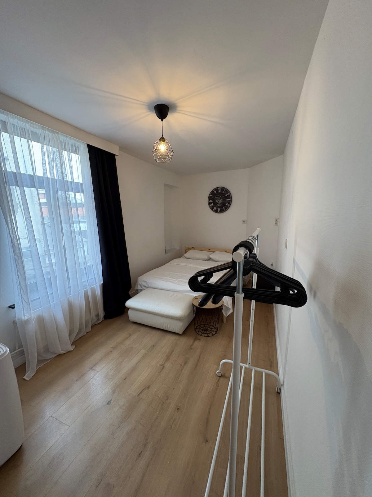 Fully equipped studio situated 10 minutes from Brussels airport and 15 minutes from the center by car. The room consists of a double bed, a convertible double sofa, a TV (apple tv and Netflix), an office/dinning table, a balcony and separate fully furnished kitchen and WC. Moreover, there is a swimming pool (accessible by reservation of 30-minute period) and a sauna. An outdoor tennis court and a Parking space are also available for free. Available for short or long term reservations.