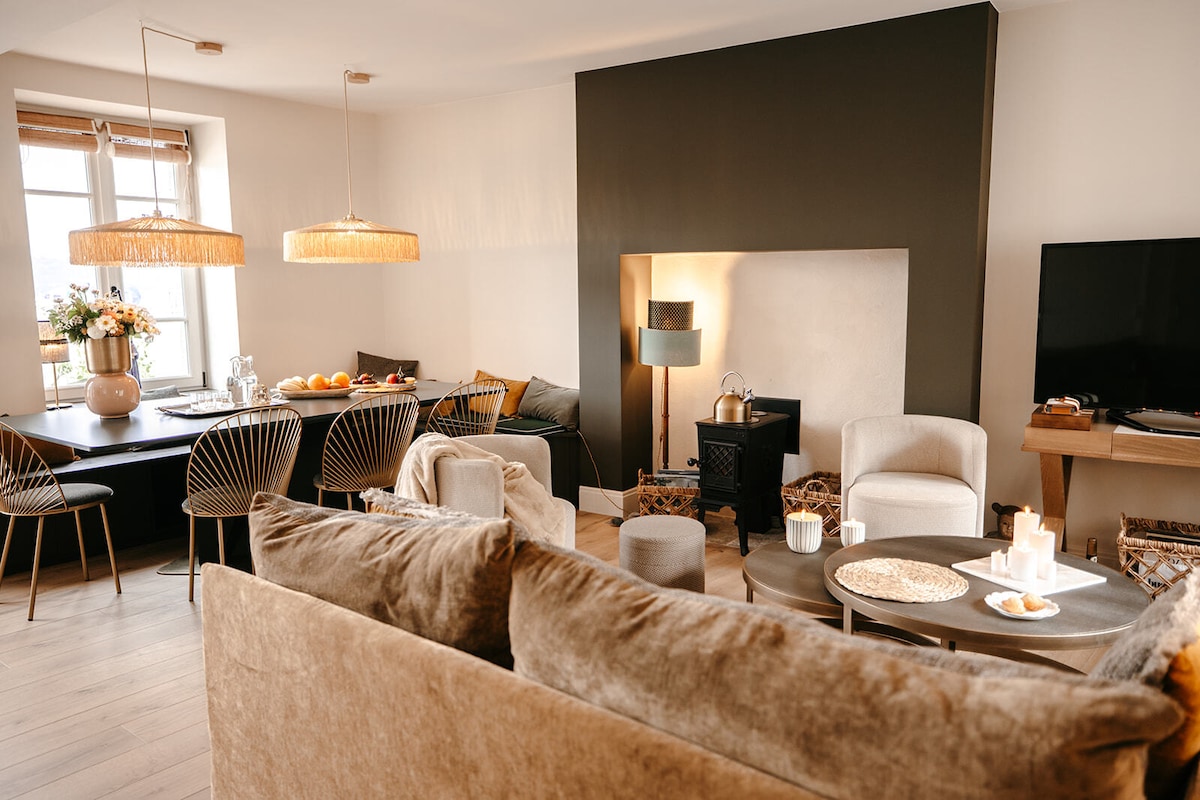 En plein centre de Dinan, laissez-vous transporter par l’élégance de la Rome Antique. Détendez vous dans une suite haut de gamme avec balnéo privative. Profitez du confort d'un lit queen size avec literie hôtelière, d’une cuisine équipée, d’une TV connectée avec Netflix, du WiFi fibre et d’une terrasse intime. À deux pas de la Tour de l’Horloge et du pittoresque Jerzual. Parkings, Restaurants et commerces à proximité immédiate. Tout est réuni pour une escapade romantique inoubliable.