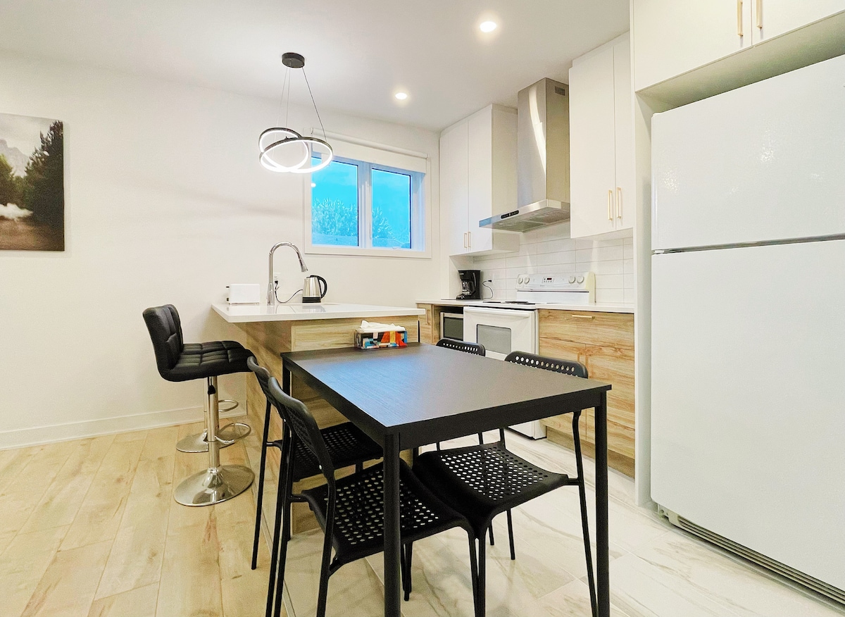 Fully Equipped 4 1/2 Basement + Solarium 1 Bedroom + Kitchen + Living Room + Bathroom. Private Hot Tub - Available 24/7 Though it's a basement, there are lots of sunlight coming in. High Speed WIFI + Smart TV For any drummers/musicians out there, there is an Electric Drum Set free to use! Private Entrance & Free Driveway Parking. We provide complimentary Bottled Water, Ground Coffee, Tea & Snacks. We do NOT allow Parties/Events/Gatherings.