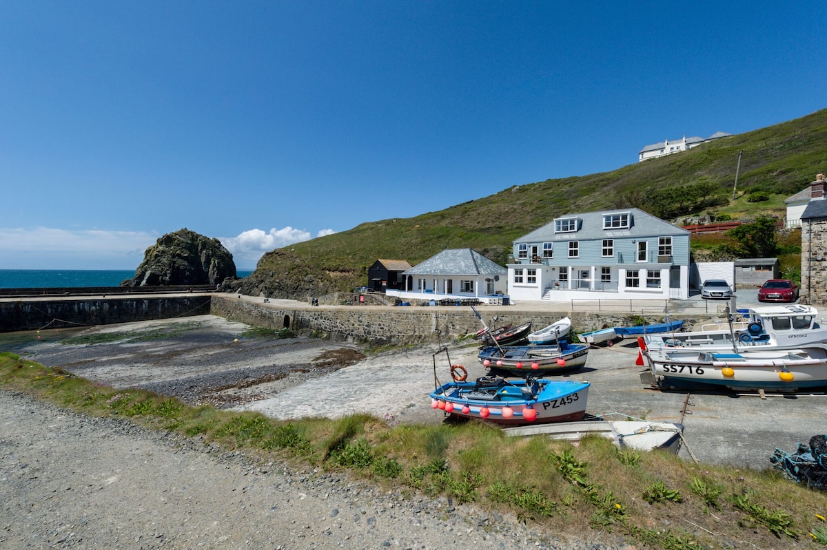 Lovingly designed by local craftsmen & artist friends, The Lodge at Trecara is yards from cliff with breathtaking walks to beaches. Local art hangs on colourful walls, the deepest of baths, waterfall shower and hot tub are bliss. Super king bedroom opens to large garden for al fresco dining & fireside stargazing. Triple bunk room, tree swing for kids. Kitchen with log burner for romantic or family nights in. Home cinema lounge with sea views. Couple/family/dog friendly. Shops/pubs 10min walk