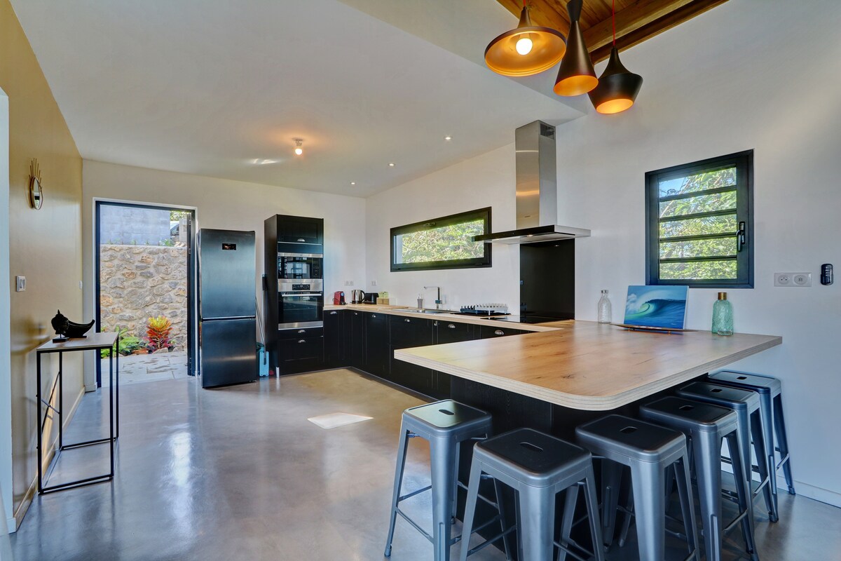Great for a couple alone or with friends (up to 4 people). Villa located 4 minutes from the beach; comprising a 1-bedroom and a 2-bedroom in a quiet and exotic environment with a magnificent sea view. The configuration offers both total independence of the two accommodations or, on the contrary, an opening from one to the other to meet around the pool and lounge. Each accommodation has a double bed, kitchen, toilet, shower.