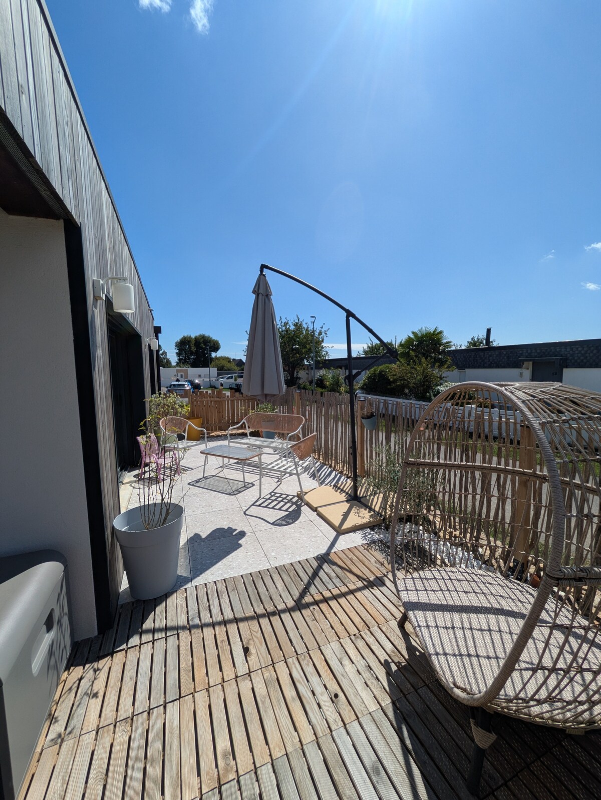 We welcome you to our fully equipped 20 m2 studio for a pleasant stay in the municipality of Saint-Avé located at the entrance to the gates of Vannes. It is equipped with a small kitchen, a living/bedroom area, and a bathroom with toilet. A private terrace and a small garden are attached to this studio.