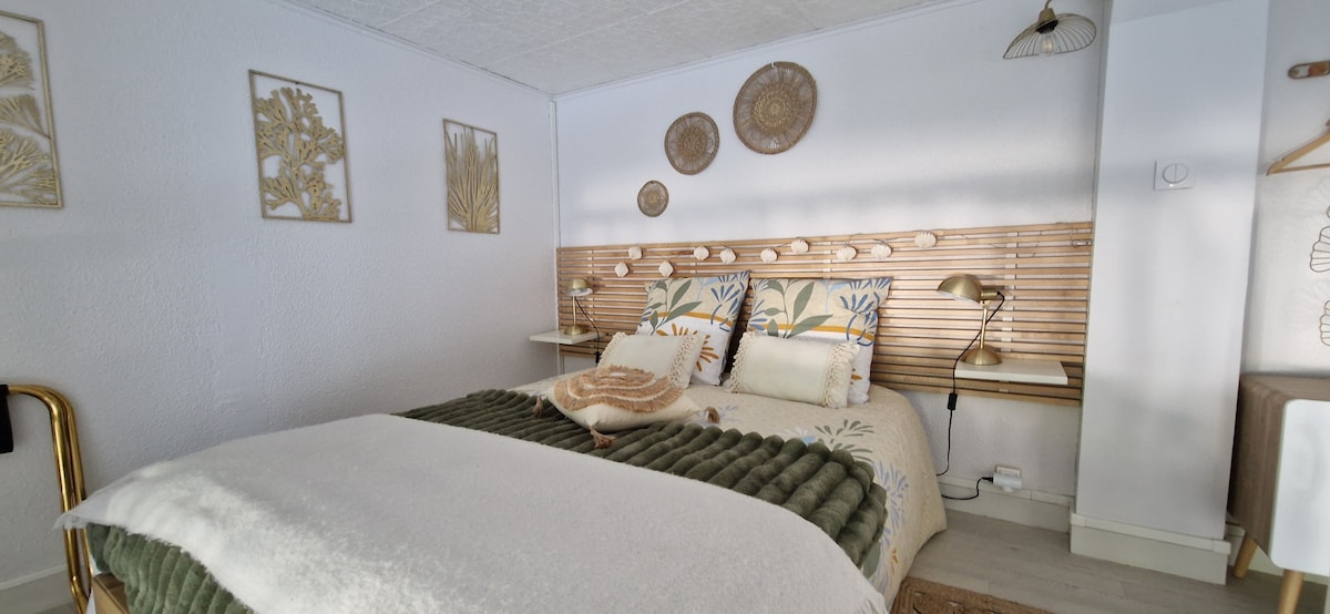 The apartment is located 1.5 km from the beaches and the city center of St Palais and adjoining our house. The staircase invites you to climb to the 1st floor in the fully renovated home with a cocooning atmosphere. It consists of a bright living room, functional kitchen, zen bathroom and bedroom that invites you to rest. You will have 1 terrace available and a private parking space. Available as a paid option: wellness massage or reflexology treatment in my institute.