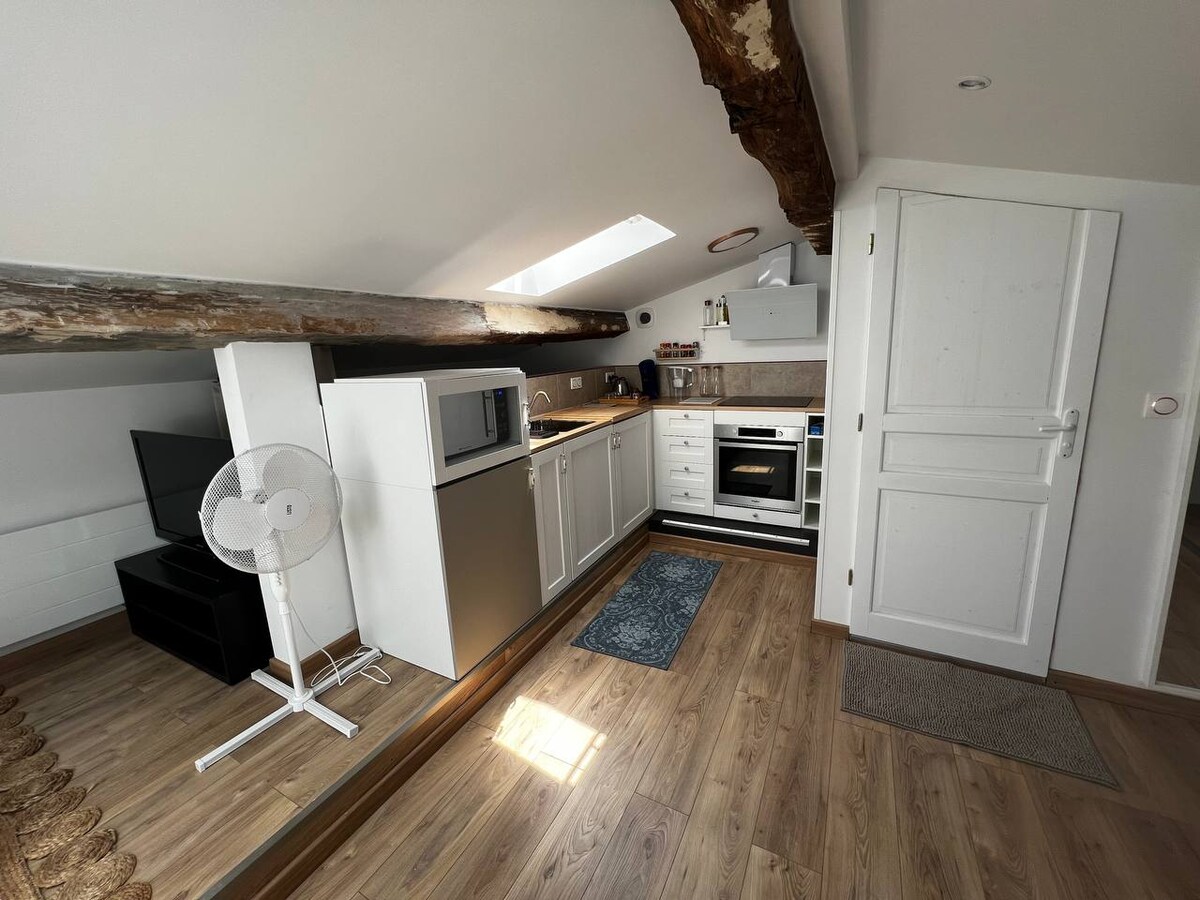 Bienvenue dans notre élégant appartement mansardé, niché dans un bâtiment historique vieux de 300 ans, sur les rives paisibles d'une rivière pittoresque, tout près de Bordeaux. C'est une véritable évasion, où le charme du XVIIIème siècle rencontre le confort moderne, créant une atmosphère unique et chaleureuse. Le calme environnant rend cet endroit idéal pour ceux qui cherchent à se ressourcer, tout en restant à proximité de l'effervescence de Bordeaux.