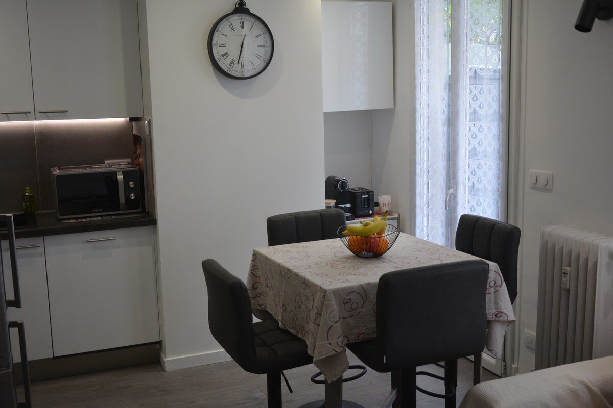 Enjoy a stylish and central 20 m2 accommodation with elevator. Close to all amenities, bus, tram. SNCF train station 450 meters away Promenade des Anglais with beach 800 meters away. Comfortable and refurbished studio, air conditioning, fully equipped kitchen. Washing machine, high-end 2-seater sofa bed, linen, iron and ironing board, TV, modem with Wi-Fi, hair dryer, heated towel rail. Check-ins are at 12 p.m. and check-outs are at 10 a.m.