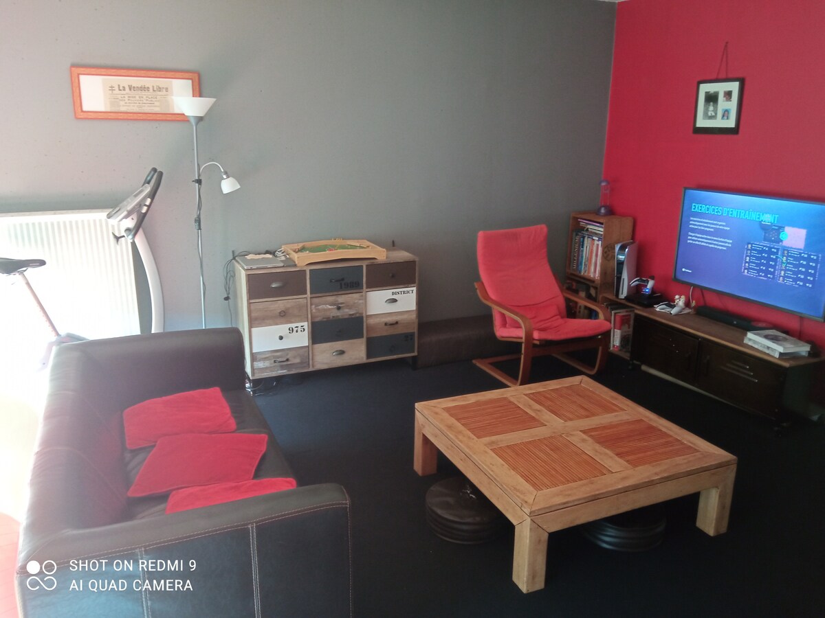 12 minutes from Puy du Fou, house renovated in 2018 at the bottom of a small cul-de-sac ending on a large green space. Ideal for 6 people (4* rating by the offices of tourism of France) it nevertheless has 8 beds. 3 bedrooms, 2 bathrooms with toilet upstairs, living room with open kitchen, toilet on the ground floor, enclosed garden, terrace and BBQ. Private parking. Wifi Common outbuilding with another cottage offering fun activities (table tennis, foosball, outdoor games)