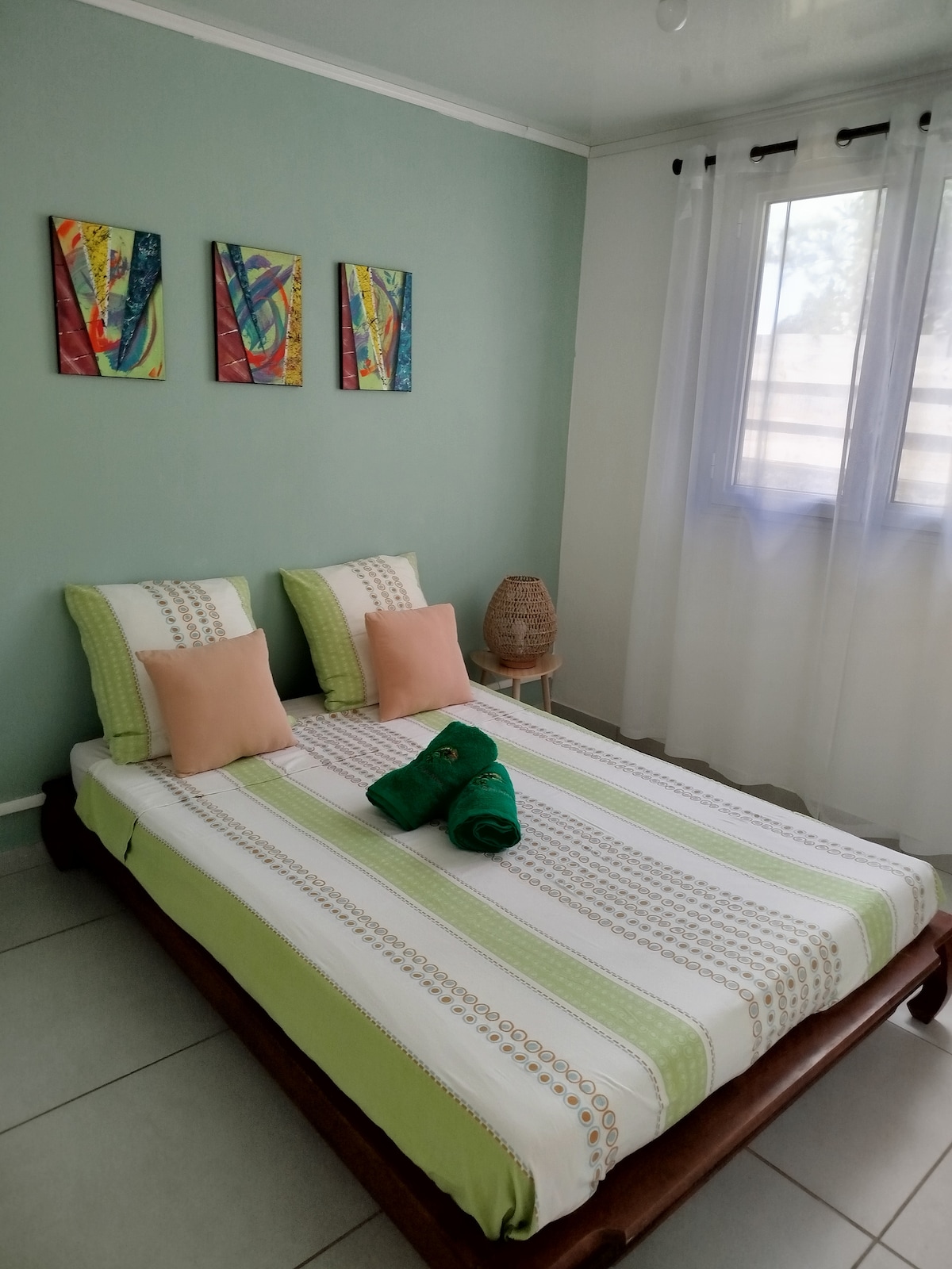Our bungalow, located 5 minutes from the airport, is designed to offer you a relaxing stay. You will discover a bright and airy space with a comfortable bedroom, a fully equipped kitchenette, a modern bathroom, and a private terrace with garden where you can relax while listening to the birds singing. Close to all amenities (shopping malls, cinema, restaurant, pharmacy, bakery, pools and waterfalls), 40 km from Salazie.