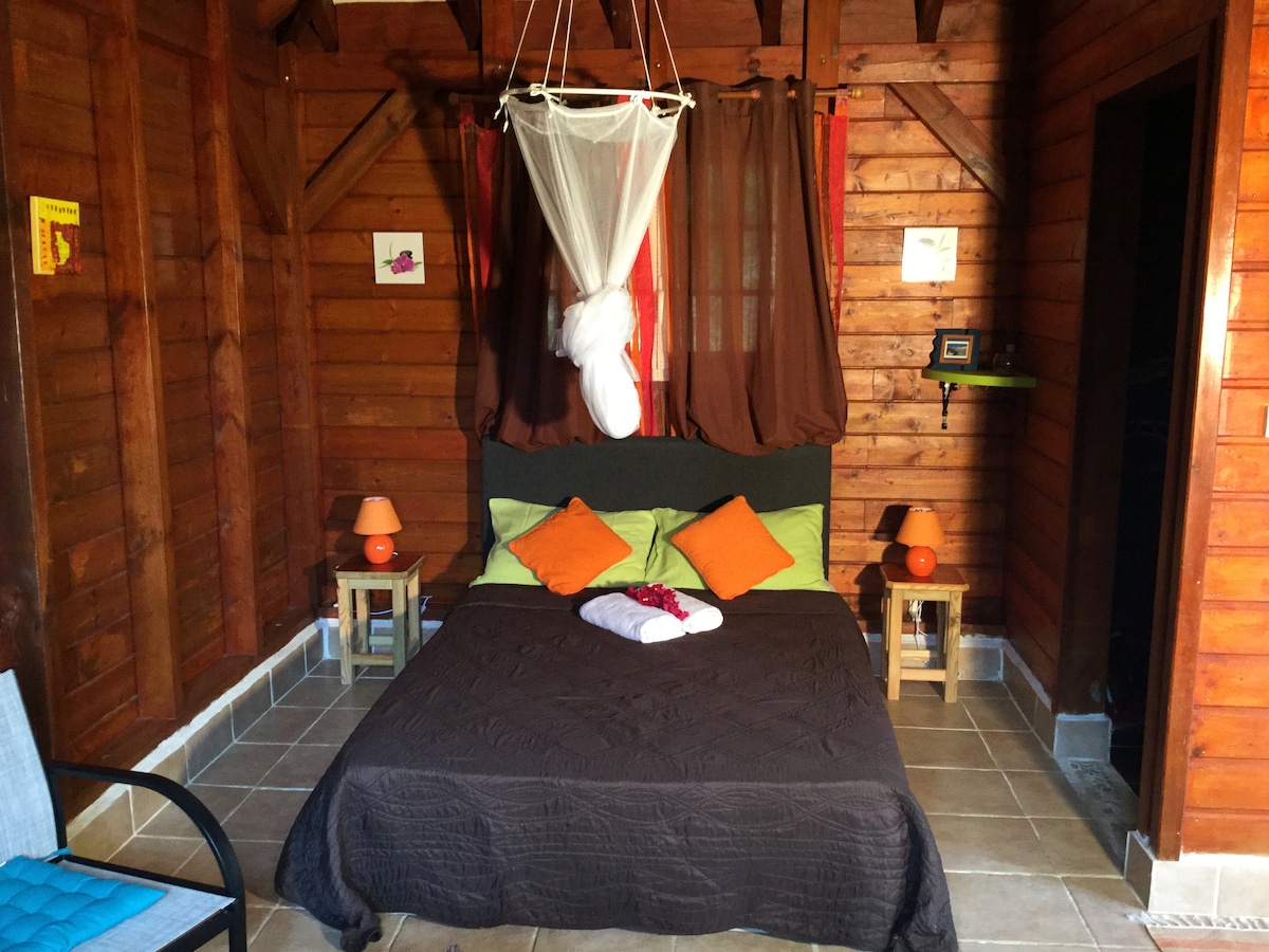 We welcome you in a cozy and charming setting. The site has 4 chalets in the heart of a green setting, away from the hustle and bustle. The Eden chalet is perfect for your romantic getaways with its spa to share your moments for 2. You will be in the heart of Guadeloupe, no need to repack your bags every 3 days, you will be in control of your destinations. The rivers of Basse-Terre on sunny days or the beaches of Grande-Terre known for its sun.