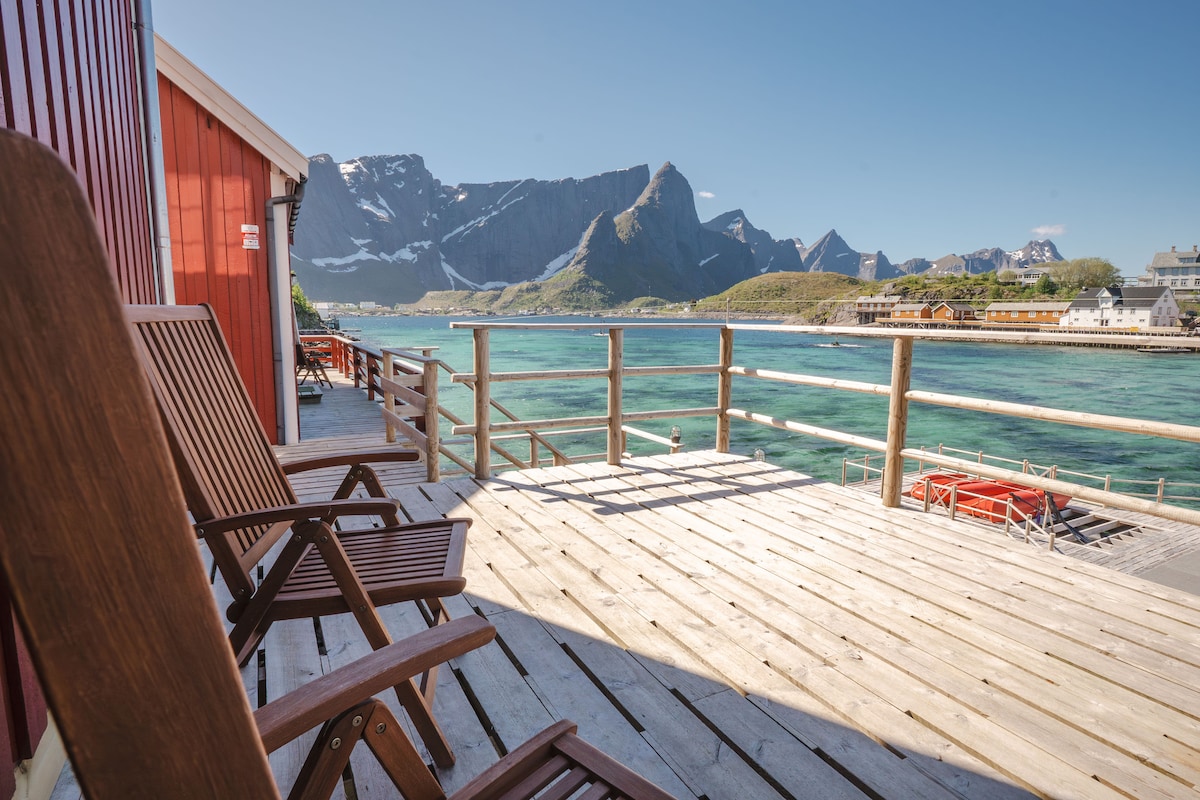 Experience the beauty of Lofoten in our small, comfortable rorbu in Reine. With 2 bedrooms accommodating 4 guests, this place is an intimate haven. Light up the wood stove and enjoy the cozy atmosphere while taking in the stunning views from the balcony, facing the world-renowned Reinebringen. You can find the washer/dryer in the storage room outside.<br><br>