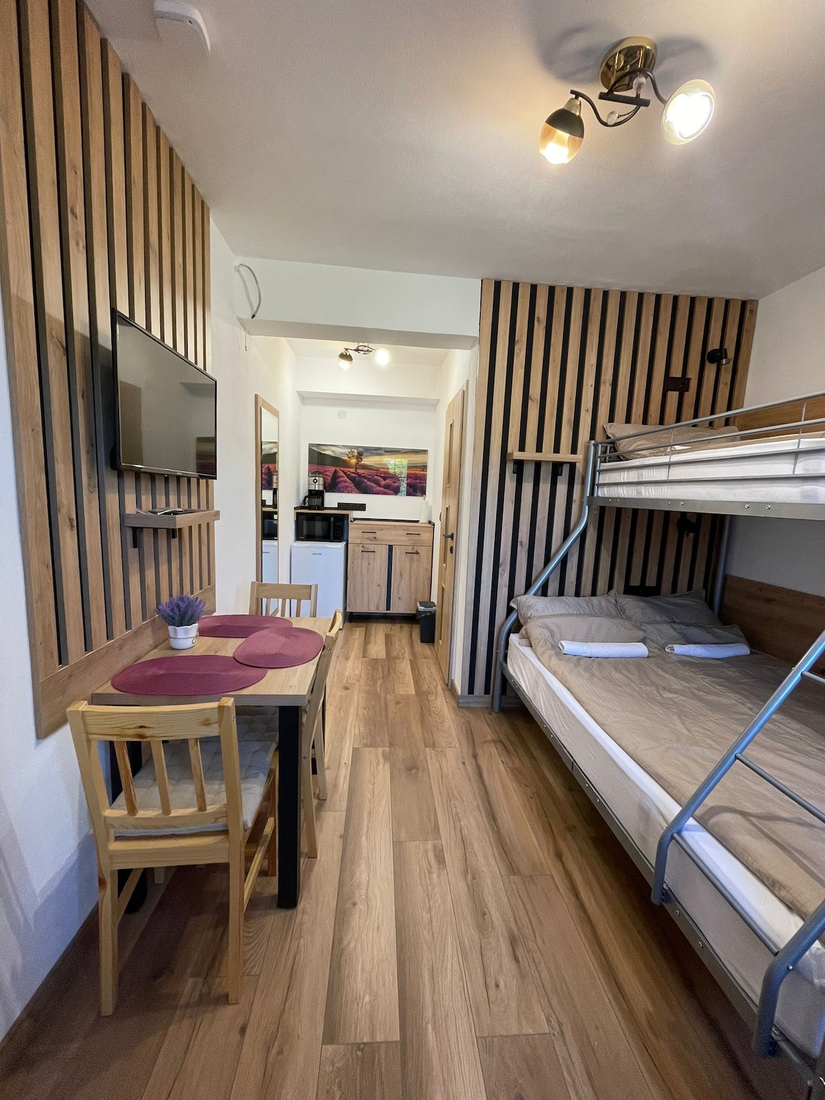 Welcome to our intimate cabin, nestled in the Apuseni Mountains. Step outside and you’ll find a birch forest and a small fishing pond that form the perfect setting for reconnecting with nature and each other. Inside, Tiny Nook continues its natural charm. Wood is the soul of the cabin, present in every detail. The wood-burning stove makes the cabin a perfect hideaway in any season, while the modern amenities ensure you enjoy all the comfort of a modern stay.