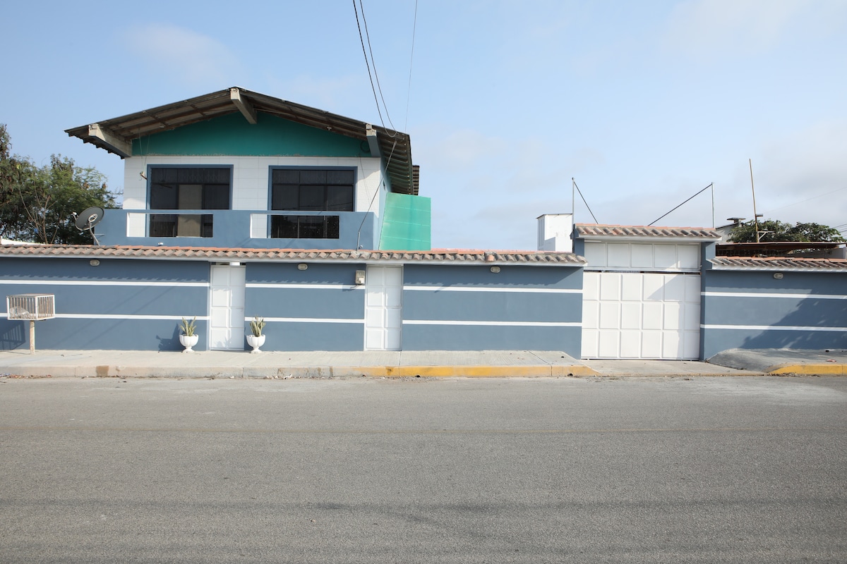 Modern finishes. Located on a main divided avenue, (in the direction of Banco Pichincha and Muelle) near the sea (4 blocks), near the market (2 blocks). -Furnished - Air conditioning in each room, -Wifi area (3 networks for better connectivity) -Spacious patio with private pool and whirlpool with colorful LED lights and to liven up small social gatherings - 3 hammocks - Barbecue area, (BBQ) - Laundry room - Garage for 2-3 cars - Additional guest cancels separately