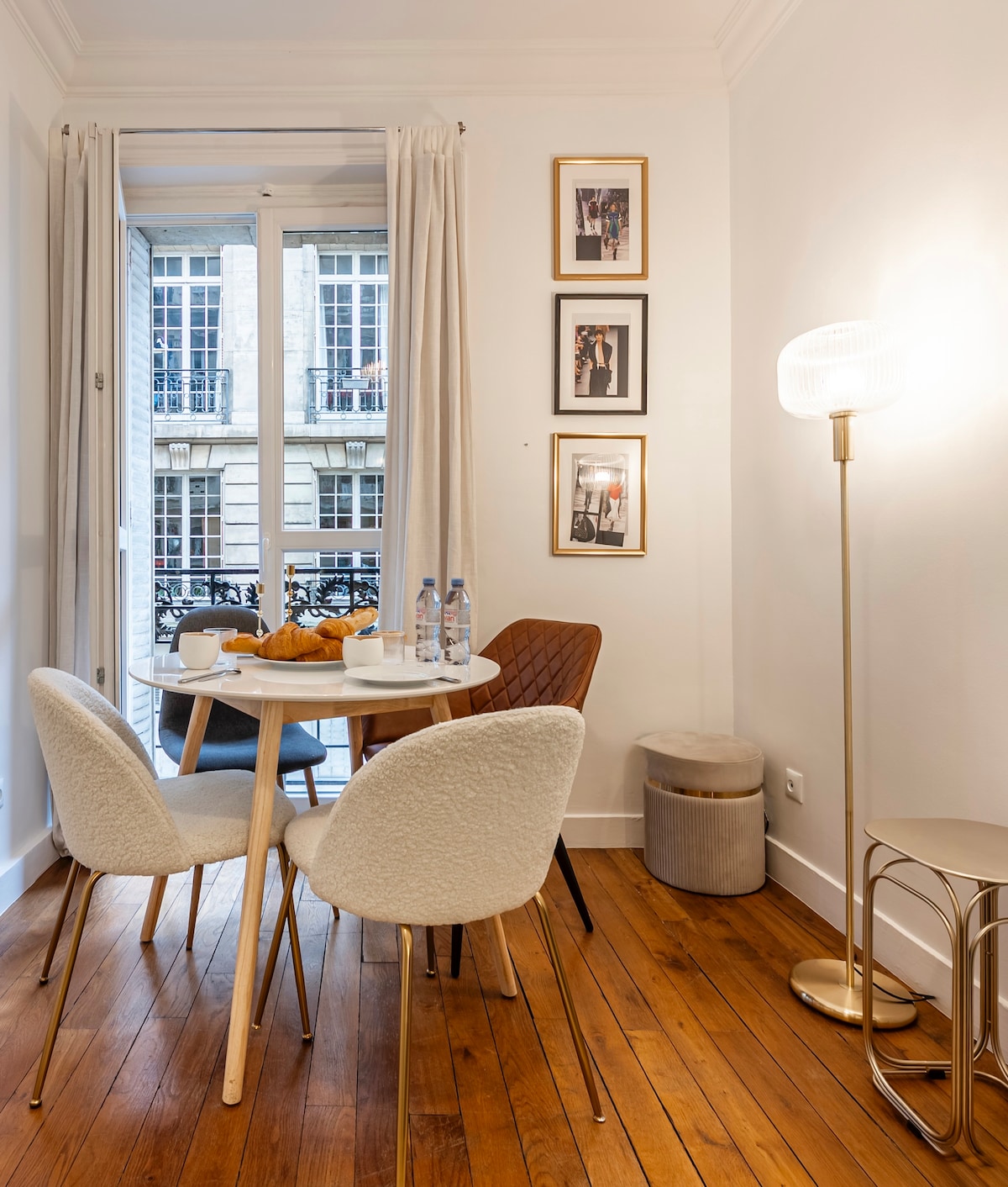60 m2 air-conditioned apartment with high-end layout in the very center of Paris, historic district of Montorgueil, famous for its food shops, small bistros and restaurants. The apartment is located on the 1st floor of a building on a very quiet street. It was refurbished in 2023 by a famous architect and therefore very well arranged with very high-end amenities. You will be like in a hotel suite with the charm of a real Parisian home.