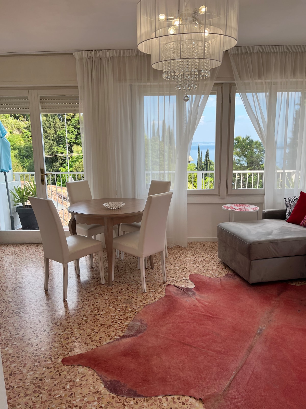 A unique apartment perfectly located on the charming Riviera,just few steps from the heart of Salò.With private garden access to the crystal-clear waters, it offers a rare opportunity to immerse yourself in an oasis of peace and tranquility. It is a cozy, welcoming retreat,ideal for relaxation,designed for comfort,and blending historical architecture with modern touches to create captivating experiences throughout the year. Garden is semi-private.Flat is reachable by car .Fast and unlimited wifi