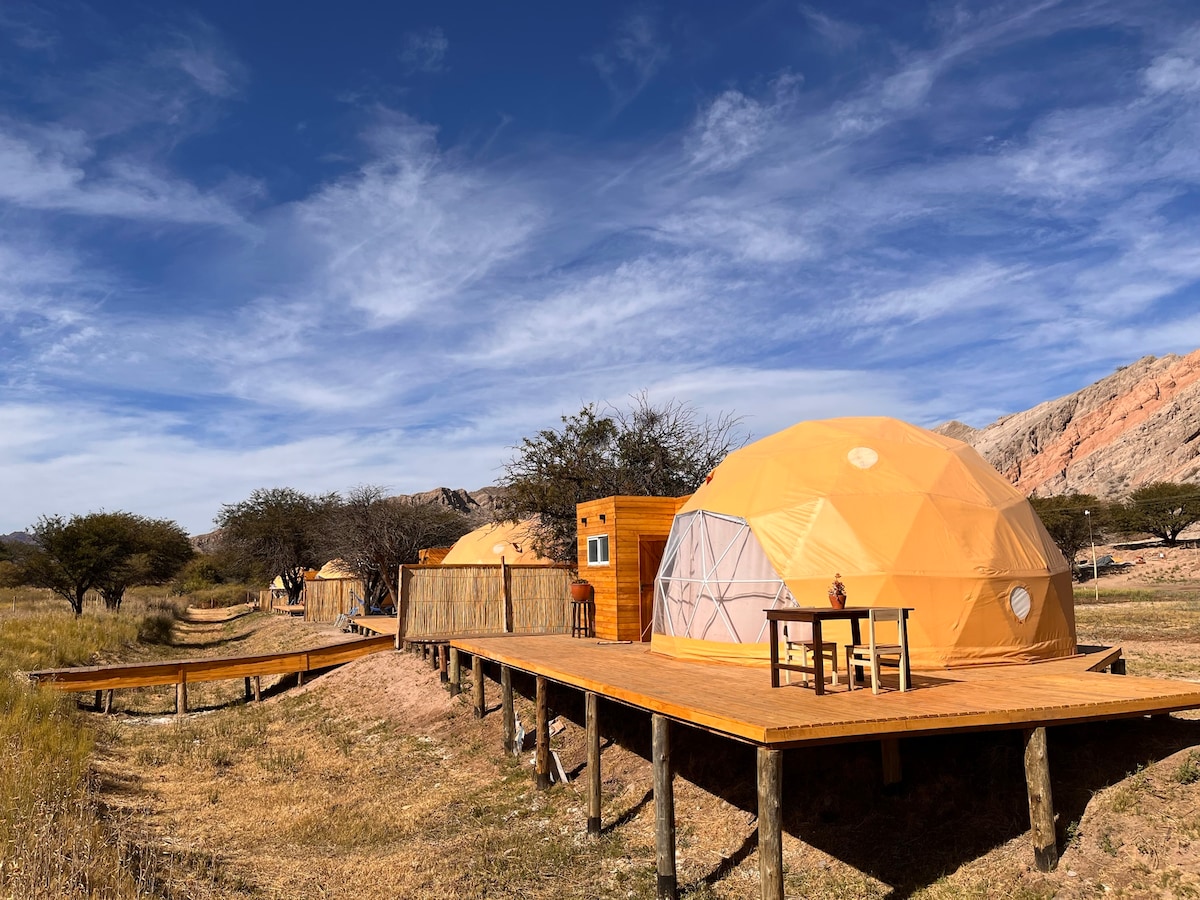 Connect with nature on this unforgettable getaway. Glamping in the heart of the Calchaquí Valleys. Domes for 2 and 4 people. Each dome has a private bathroom, kitchenette, minibar, electric kettle, air conditioning, mate equipment, mini garden with spices, tables, deckchairs and Paraguayan hammocks. - 50% of our facilities are accessible.