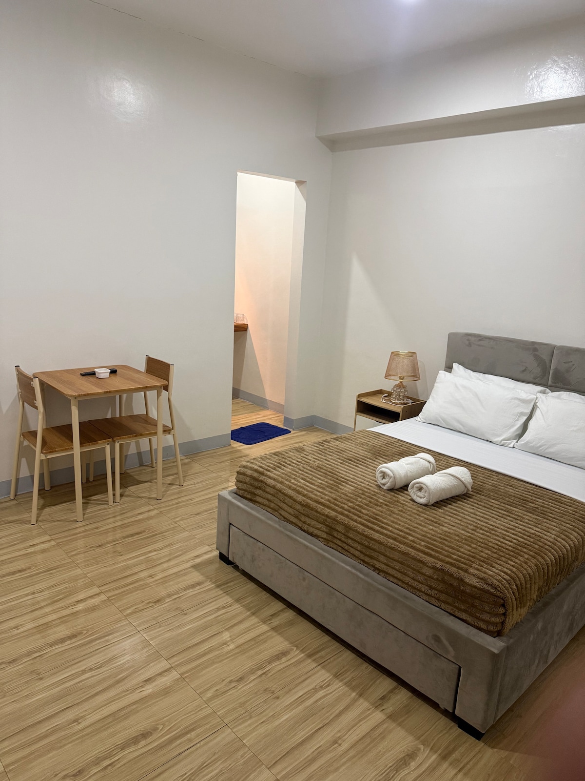 Our American style studio comes with a small kitchen. Welcome to Kaylyn's upper Corner! Our brand new guest house 45 sqm in size, that we'd love for you to enjoy. Close to Tacloban City, this space is a great home away from home, with an airy floor plan yet warm and comforting decor. Comes with galley kitchen and large bathroom, sleek hardwood floors, and cozy decorations. You will have your own separate entrance.