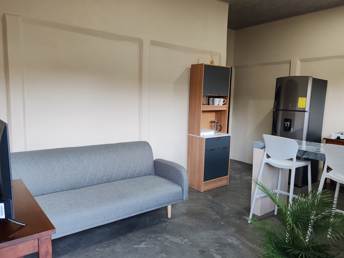 Cozy apartment, fully renovated and furnished, located only 5 min from the beautiful Carrillo Beach. It has an equipped kitchen open to a spacious and air-conditioned living room, bedroom as well as bathroom. From the apartment, its private terrace and infinity pool, the views of the jungle and ocean are breathtaking. It is the ideal place to recharge with the birdsong, to contemplate Costa Rican nature as well as monkeys and butterflies.