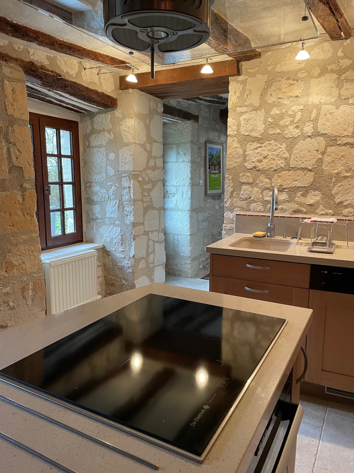 In the grounds of a turreted 15th century château - featured in a number of homes & interiors magazines - this beautifully converted, spacious, former stables is set in glorious gardens with views over our 10-acre truffle orchard. Full of character and charm, thick local limestone stone walls keep the house cool in summer yet cosy during the colder, truffle-hunting months. The covered terrace is perfect for alfresco dining and has an uninterrupted view of the gardens.