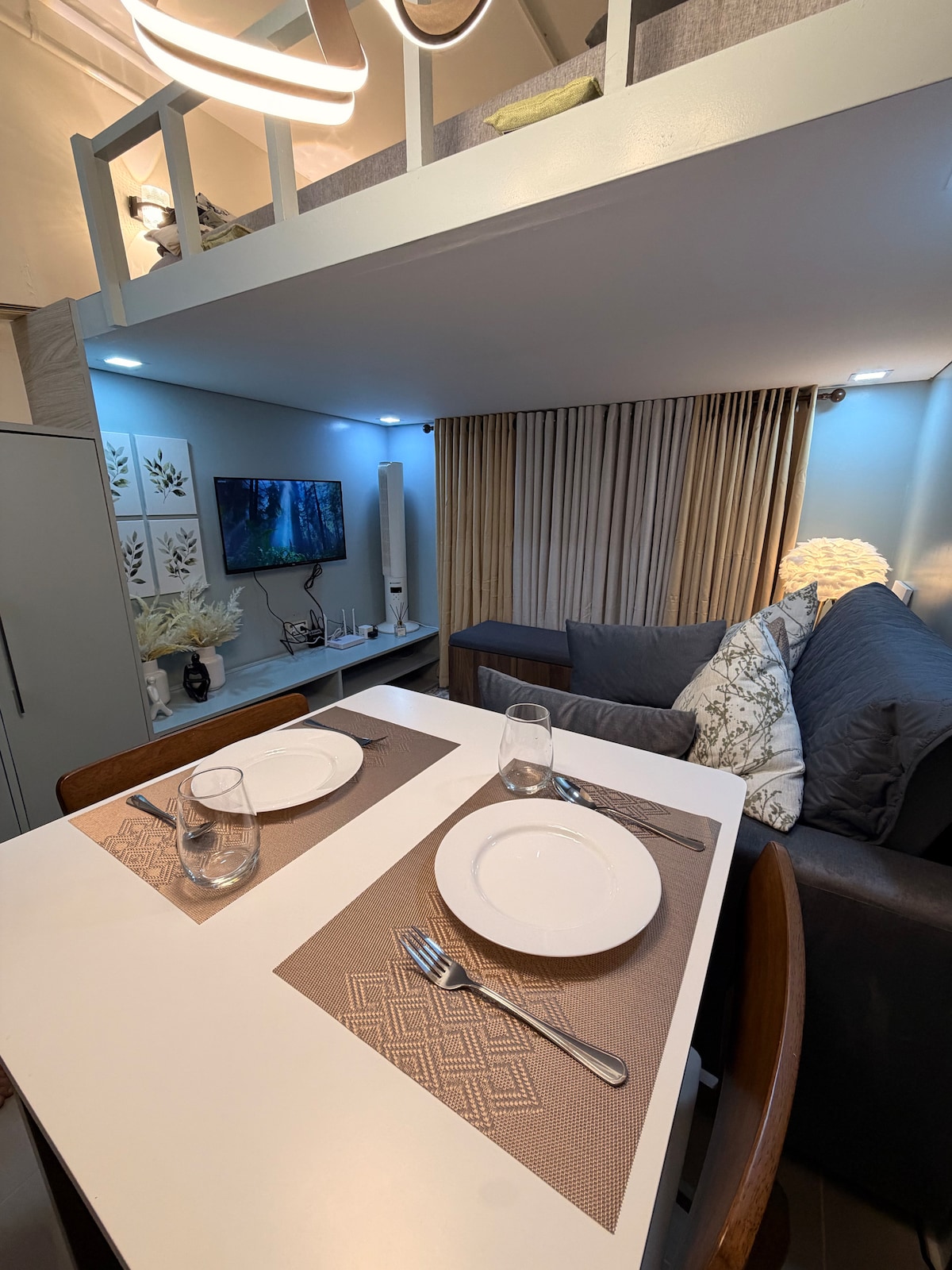 Welcome to our airy contemporary and Mediterranean-inspired Tahanan, a 25 sqm studio unit in Mandaluyong, just a short walk from Rockwell and Powerplant Mall! We’ve designed our space to provide a comfortable stay while capturing stunning sunset views, as well as views of Mandaluyong and Makati from our balcony. Whether you’re visiting for work, leisure, or a mix of both, our well-equipped Airbnb is the perfect base for exploring the vibrant cities of Mandaluyong and Makati.