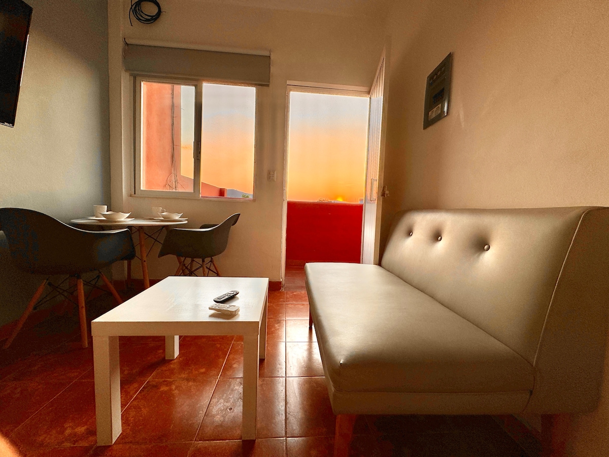 Disfruta del fácil acceso a todo desde este alojamiento perfectamente ubicado y que brinda una estancia tranquila y confortable. El departamento tiene en la planta baja la estancia con sillón, mesa de comedor para dos personas, cocina y baño completo con regadera; escaleras tipo caracol para subir a la planta, donde se encuentra la recamara con cama, closet, aire acondicionado y cortinas blackout, desde ahí se accede a la terraza semi-privada con dos sillas para exterior y sombrilla.
