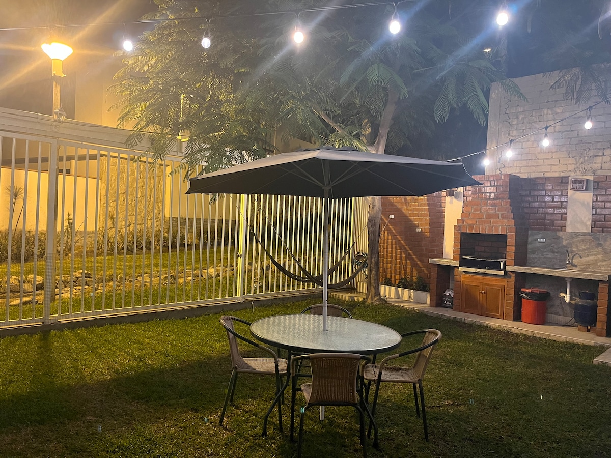 Escape the city and enjoy a unique experience in our cozy country house. Enjoy the best weather near Lima, with sun all year round. Pool, large garden, grill area and mud oven. Located in a condominium of only 5 independent houses. Comfortable and ventilated spaces. Fully equipped kitchen. TV and high-speed WIFI. Private parking. Pet friendly. Perfect for families, couples, or small groups looking for tranquility. Relax in the countryside!