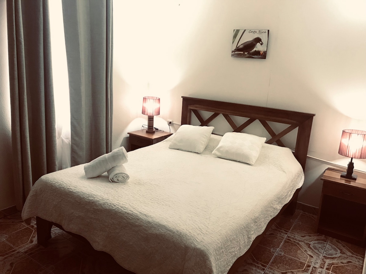 Comfortable and affordable apartment located just 1 mile from downtown La Fortuna by Pali Supermarket. This one is located in the first floor of the building with two bedrooms each one with a full bed, A/C unit, Smart TV, WiFi (100 megabytes), private bathroom with hot water, kitchen, living/dining room, private parking. Walking distance to town, it will take about 15 minutes to the central park in a very secure neighborhood.