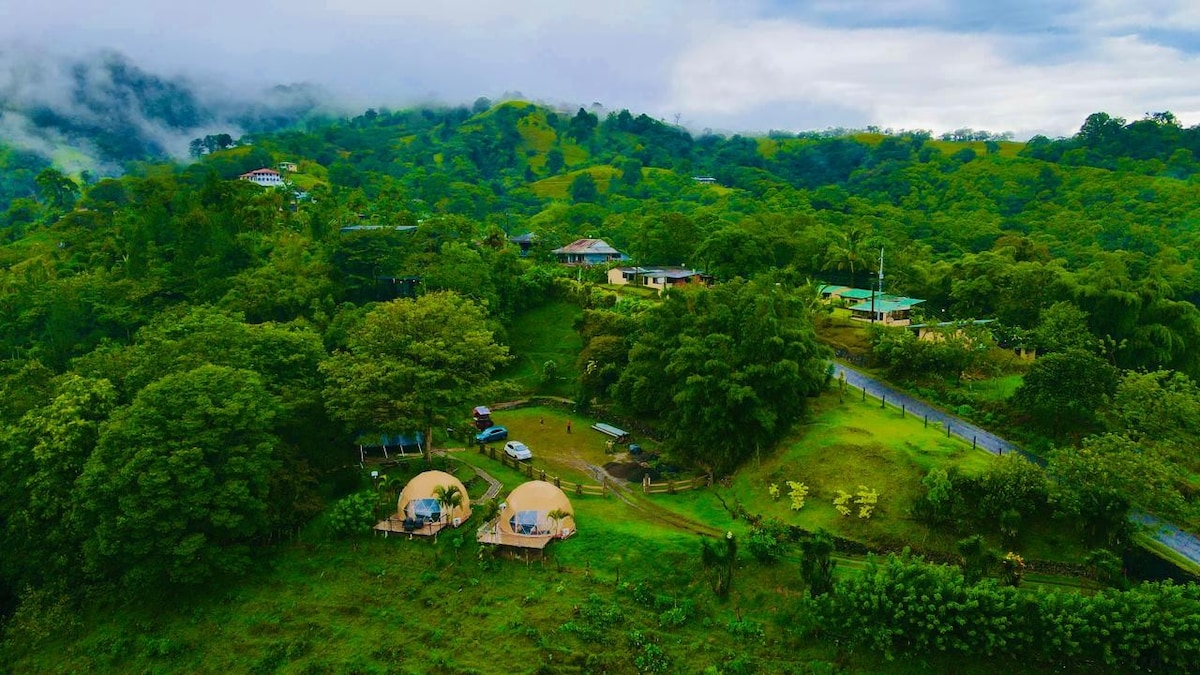 Excellent mountains and Arenal volcano panoramic view. Lapa Glamping is the perfect place to get away from it all. Located in the heart of Ciudad Quesada, San Carlos, we're a cozy dome with a beautiful view of the volcano, giving you a chance to relax and unwind. Just located 20 minutes far away from Ciudad Quesada downtown and 5 minutes from Termales del bosque and Tucano hotsprings.