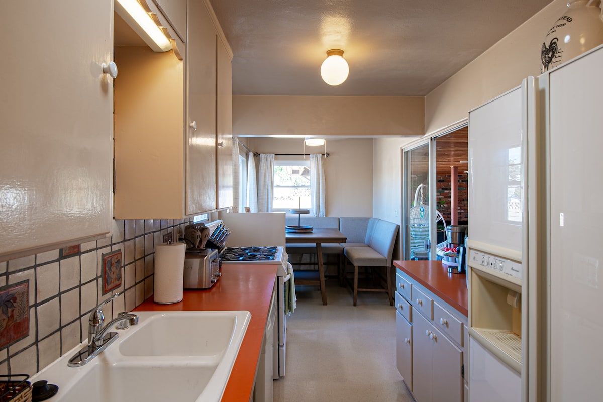 Enjoy this newly remodeled stylish studio in the heart of Ocean Beach. Light and bright with a refreshing ocean breeze from its large central window. It’s just over a half a mile to Dog Beach and a quick ride to Sunset Cliffs, with some of the best surfing and beaches in San Diego. This studio has its own private entrance, full bathroom with shower, and kitchenette. In addition, the studio includes a standing desk with a large second monitor to accommodate your remote working needs.