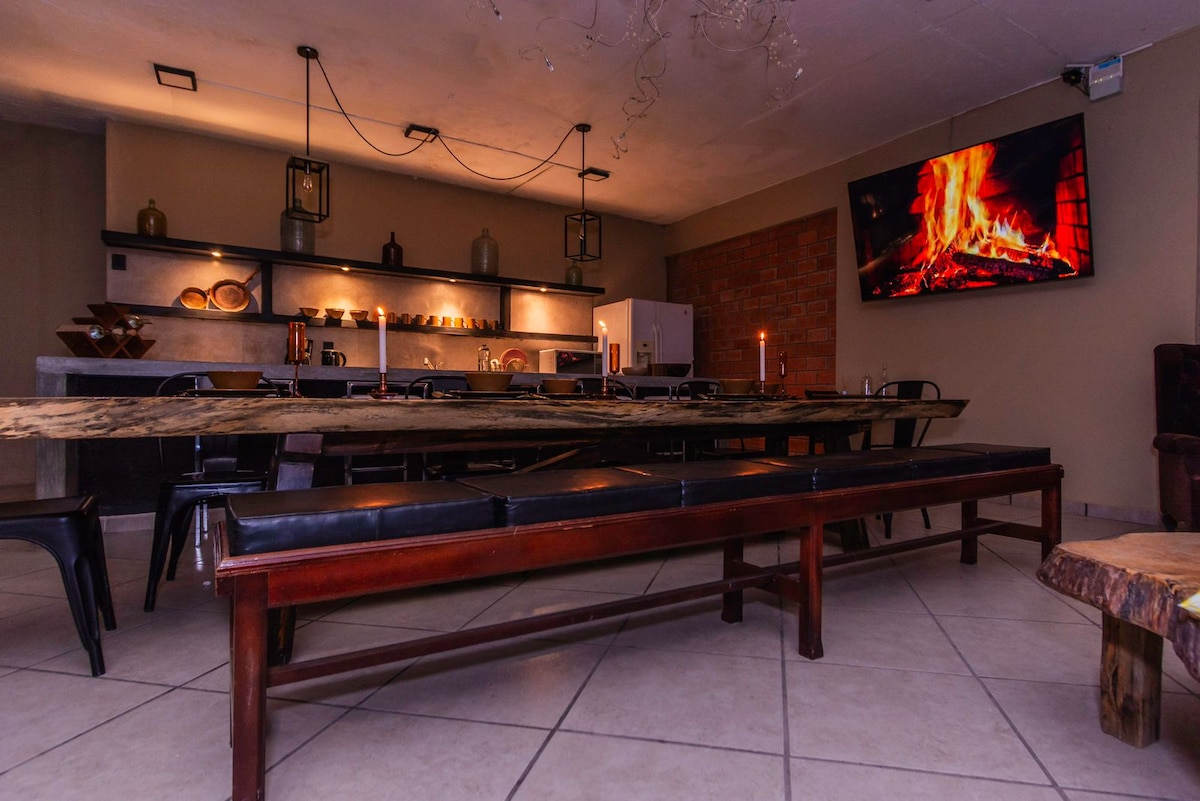 En el fraccionamiento más seguro de Oaxaca, a solo 15 min del centro, “La Casa de la Alberca” (dentro del 5% de alojamientos con Super Host), ofrece lujo y comodidad. Cuenta con 2 recámaras, cocina equipada, sala, comedor, jardín con alberca semi techada y un ambiente ideal para relajarse en familia. *No se permiten fiestas. Visitas con costo extra. Capacidad máxima: 8 personas